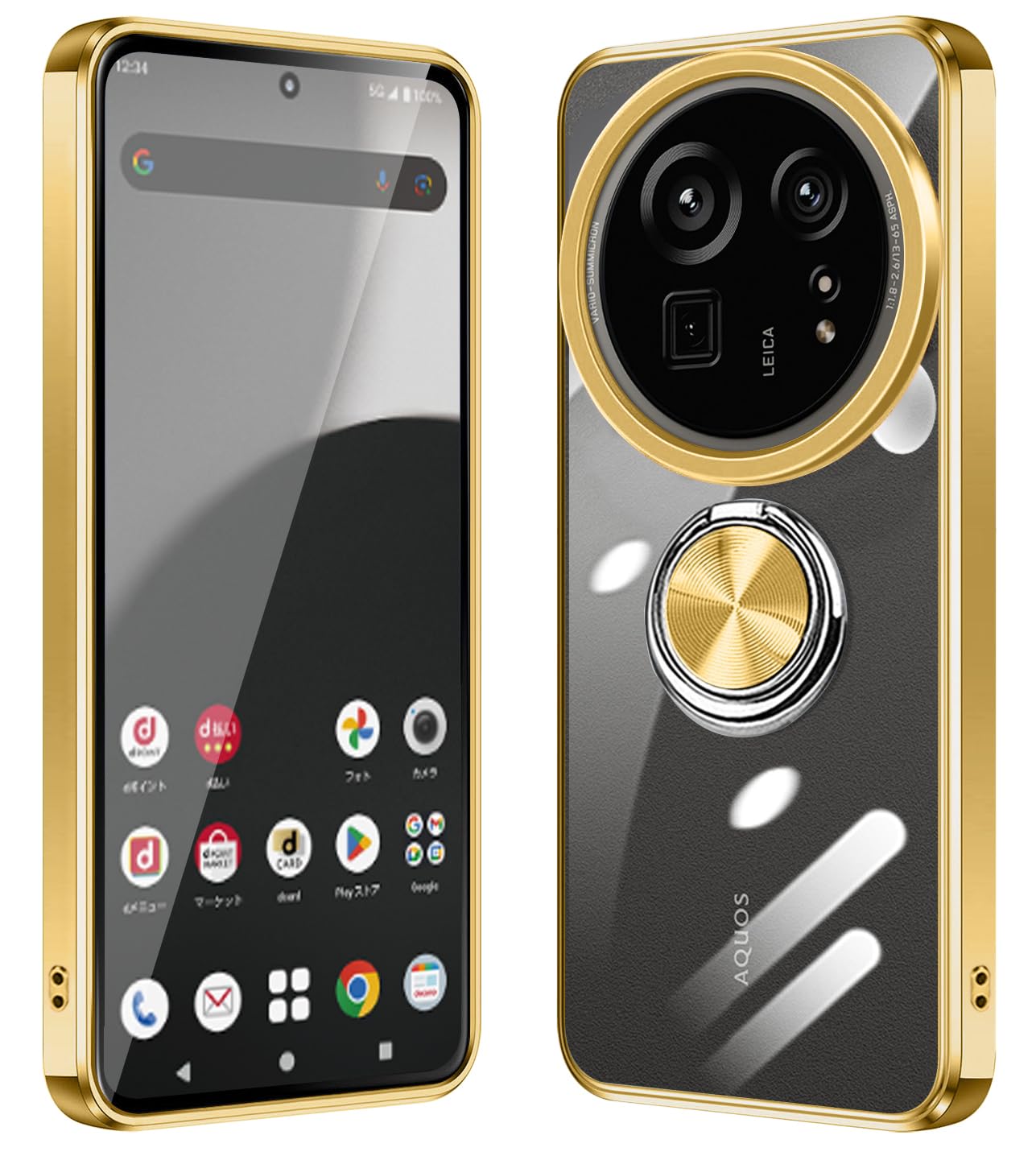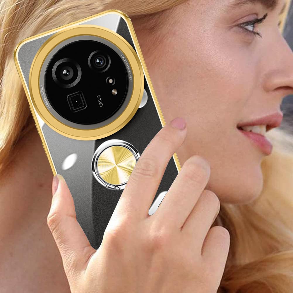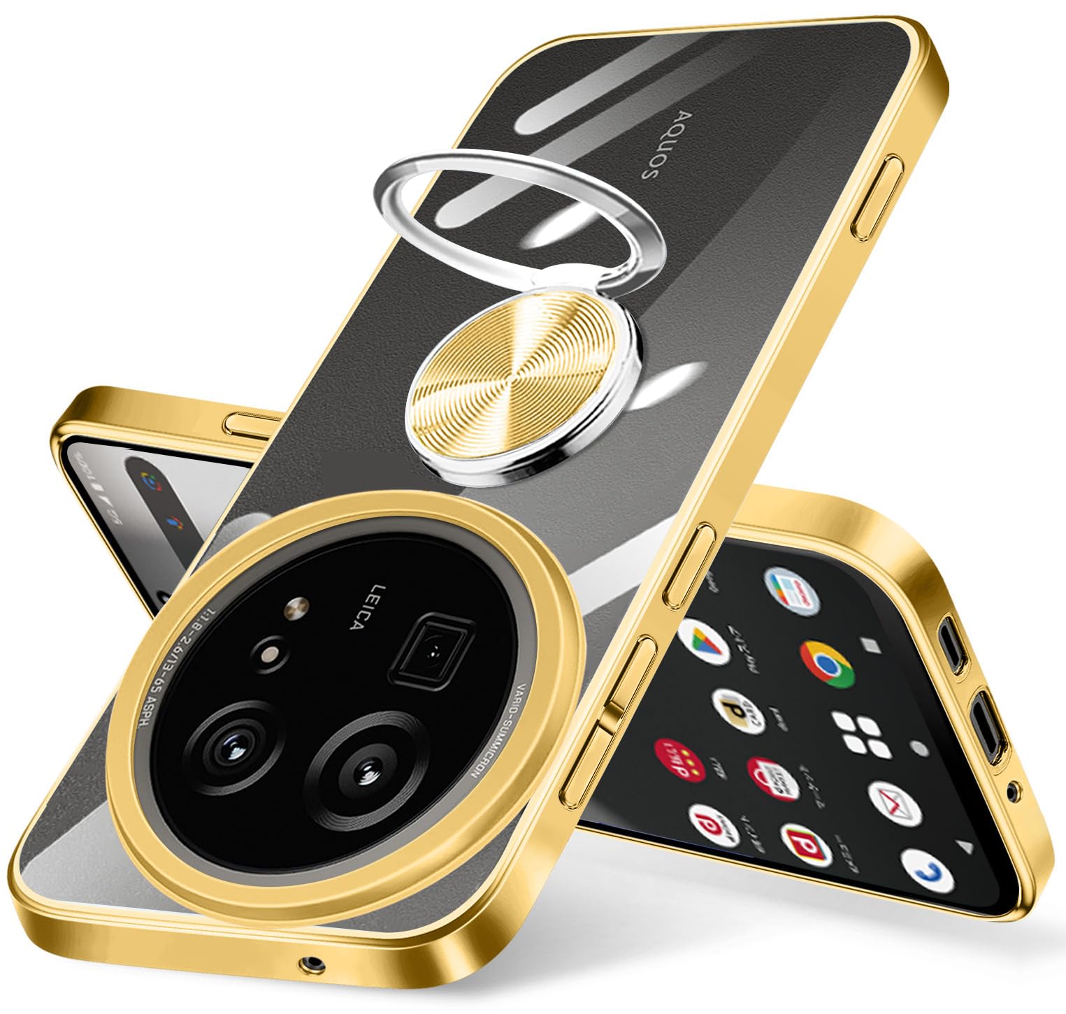 AQUOS R9 Pro ケース SH-54E ケース リング付き クリア 耐衝撃 アクオス R9プロ カバー スタンド機能 aquos r9 pro スマホケース 透明 TPU 軽量 スリム ソフト 擦り傷防止 落下防止 (ゴールド)