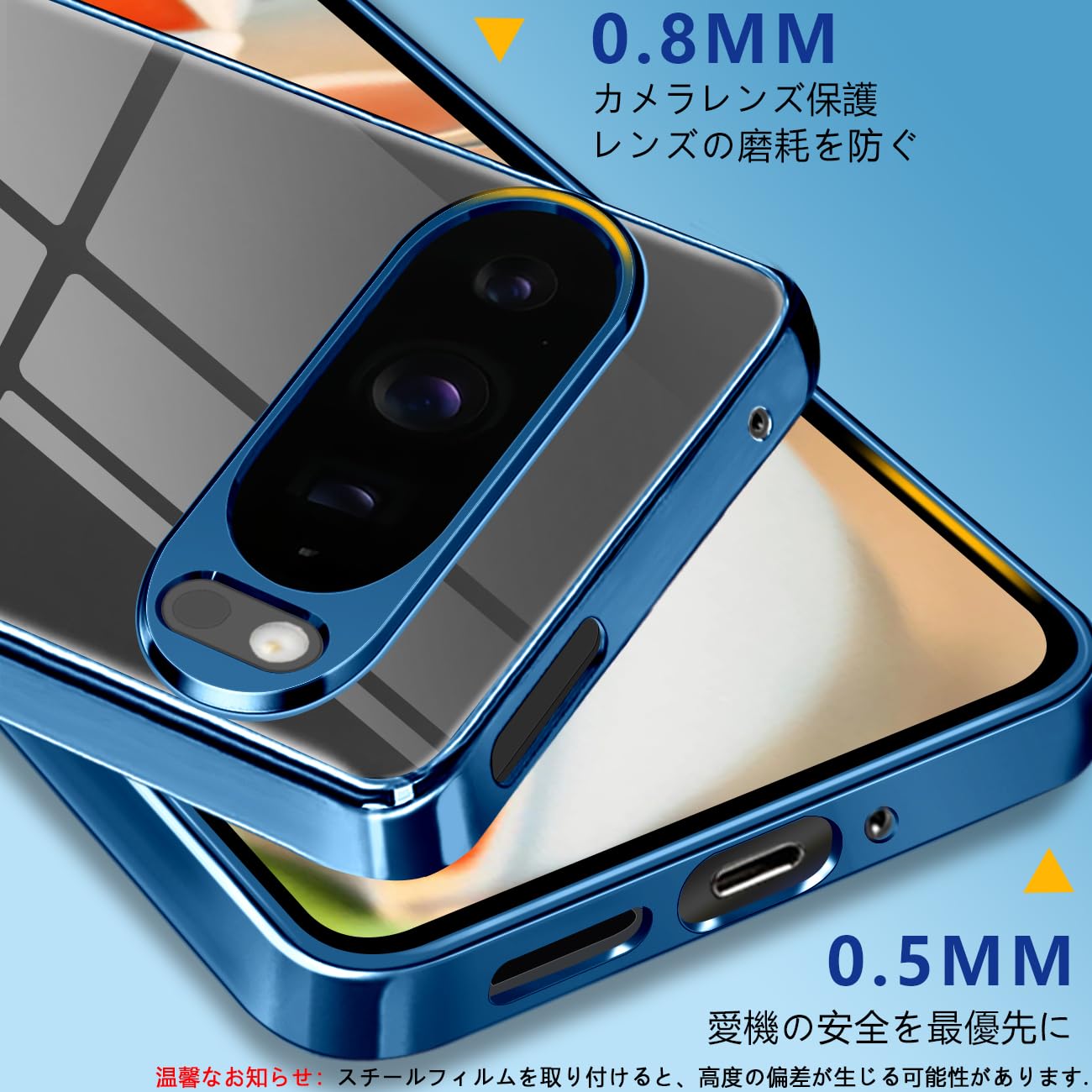 【特価商品】に適合する グーグル 用の ピクセル 9ProXL ケース クリア メッキ加工 pixel 9プロXL case 耐衝撃 薄型 Goog le ピクセル 9ProXL カバー 透明な背面 米軍MIL規格 SGS認証 TPU 透明な背面 スマホケース衝撃吸収 ソフトケース 指紋防止 滑り止め 黄変防止 ストラップホール付き カメラ保護 携帯 (ブルー)
