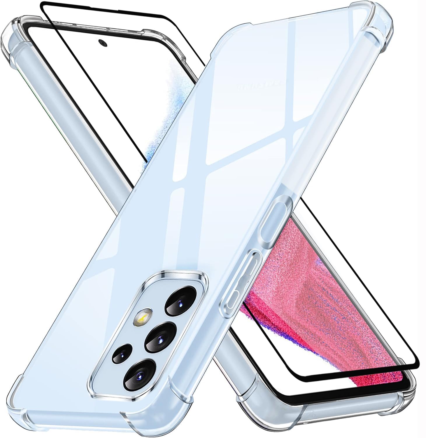 【新着商品】LAYJOY 対応 Galaxy A53 SC-53C/SCG15 ケース ガラスフィルム付き 耐衝撃 透明 ソフトTPU ギャラクシーa53 5G カバー [米軍MIL規格取得 レンズ保護 角保護強化 衝撃吸収](クリア)