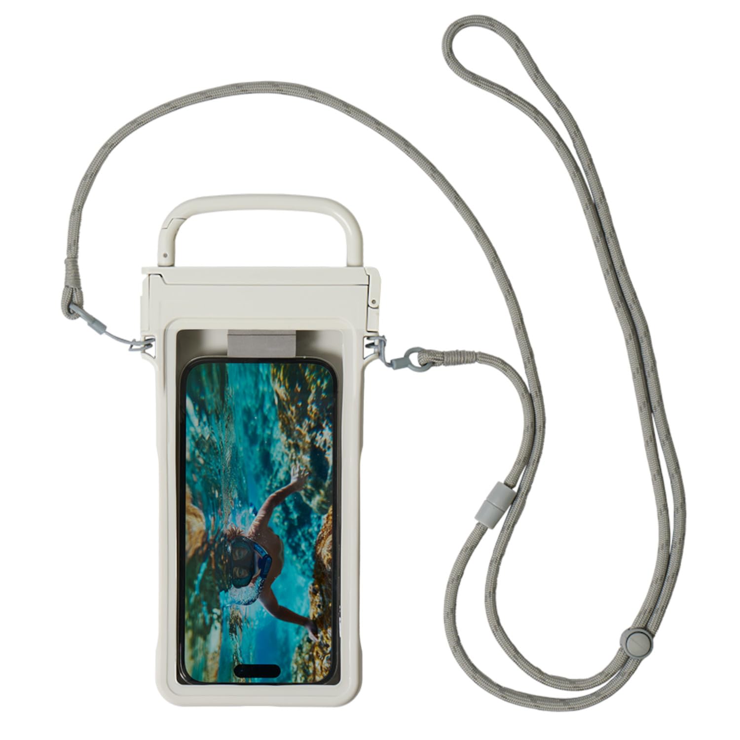 リズム(RHYTHM) スマホ 防水ケース IP67 相当 水中撮影 水中タッチ操作 [ 水に浮く セミハードケース & 便利な カラビナ ハンドル ] 肩がけ 首掛け ストラップ付き ライトグレー (オフホワイト) CARABINERCASE 9YYA66RH08