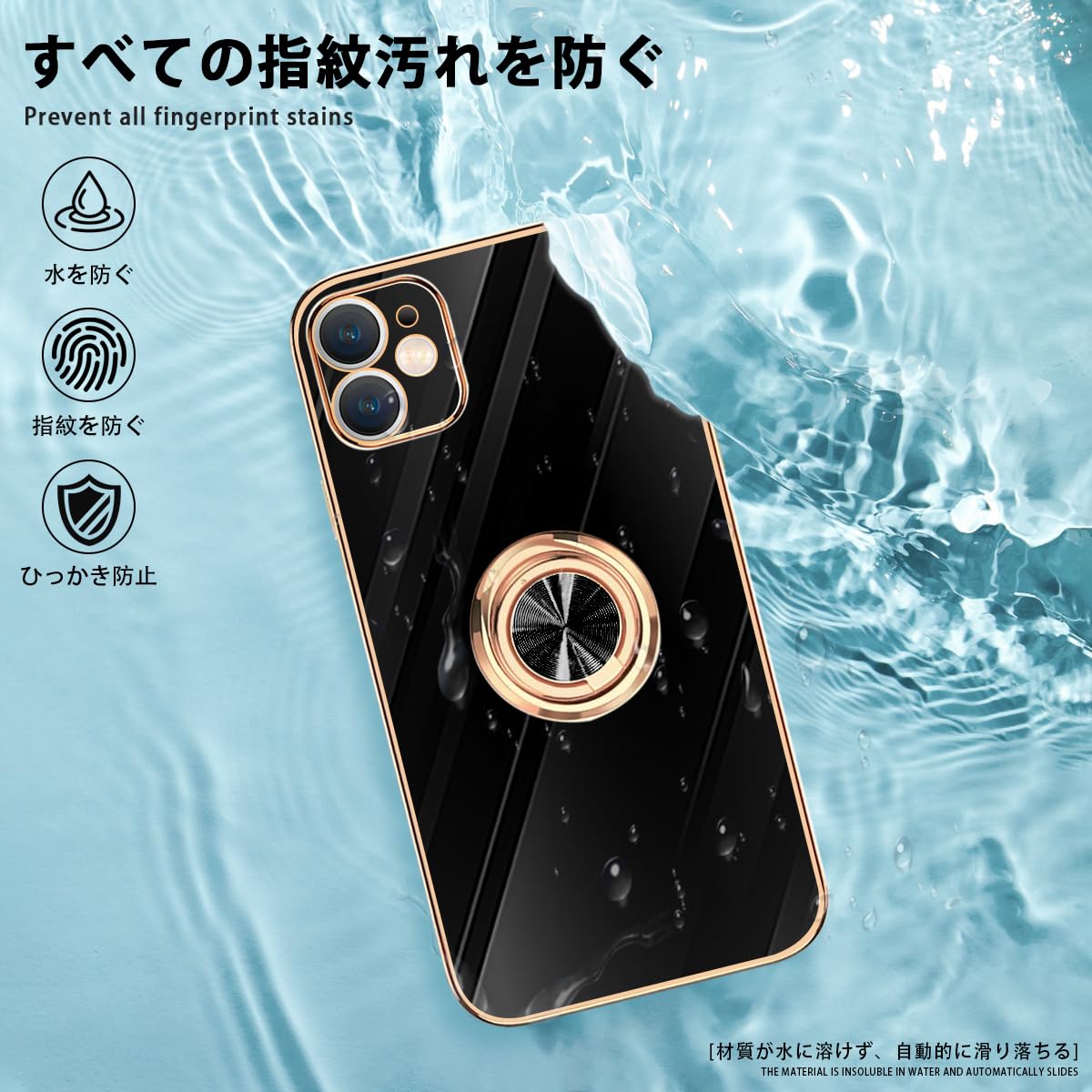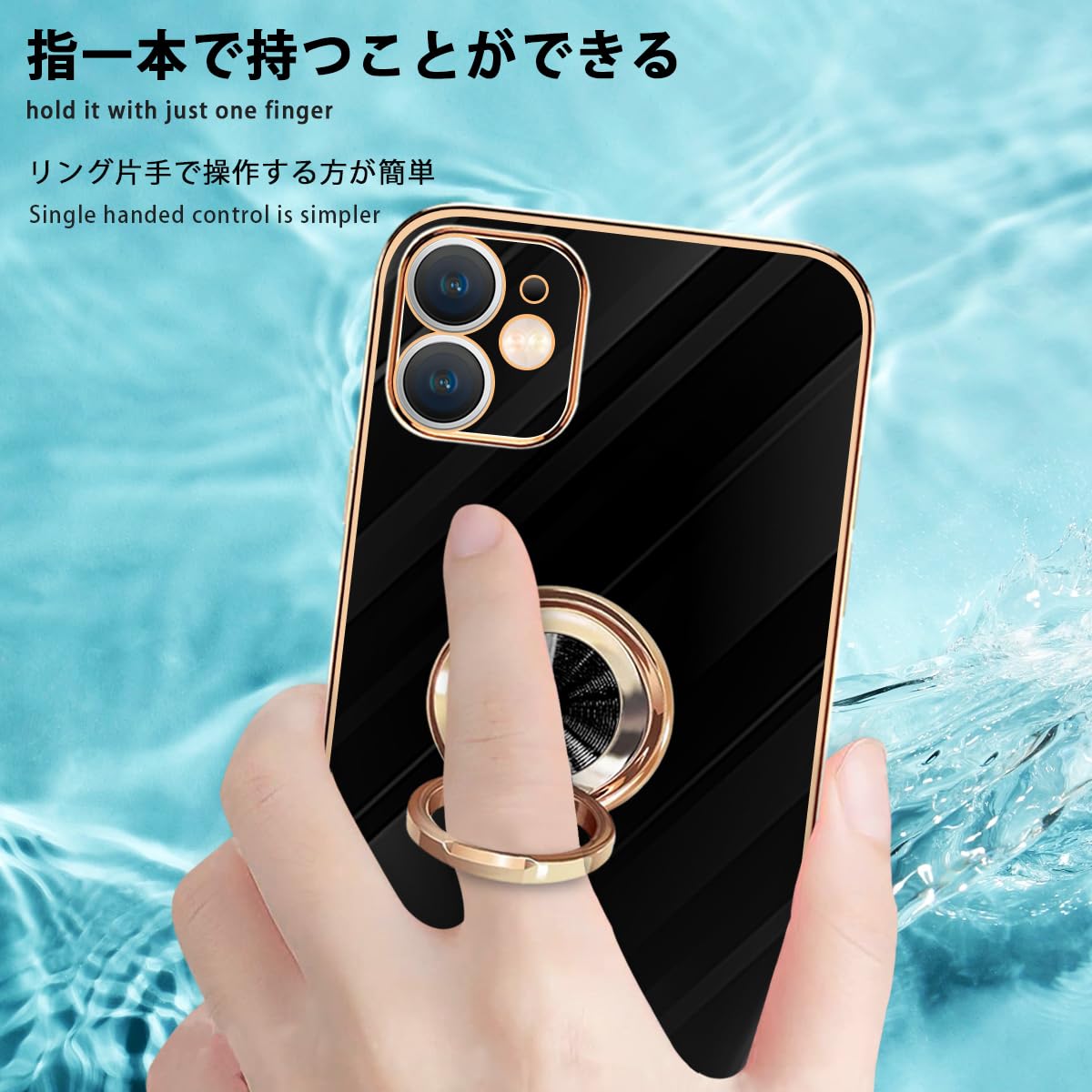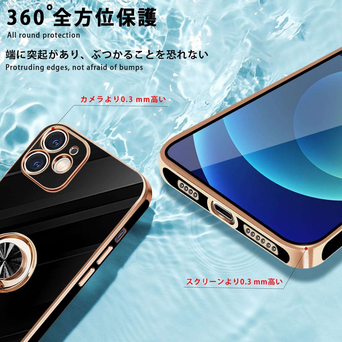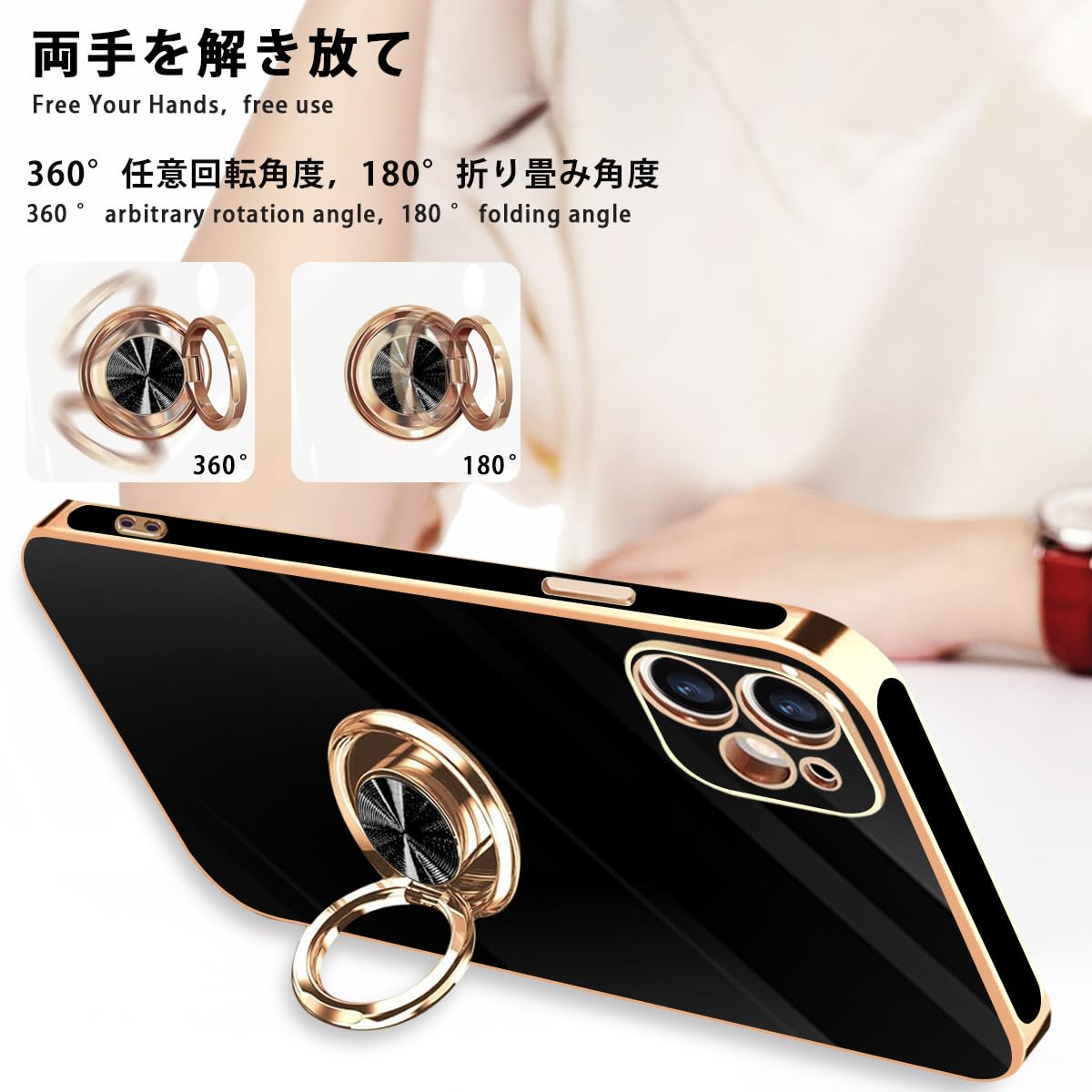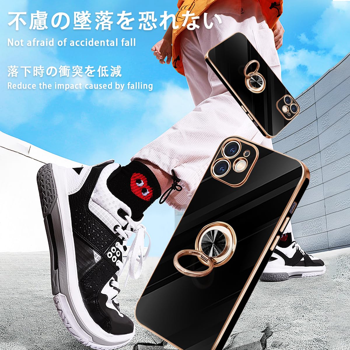 danliangqifei iPhone 12 ケース リング 耐衝撃 360°回転 スタンド機能 車載ホルダー対応 カバー アイフォン12スマホケース 携帯 保護カバー レンズ保護 ストラップホール付き 6.1イン(ブラック)