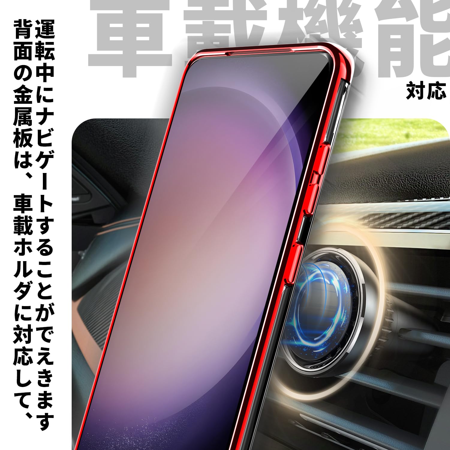 【車載スタンド対応&ストラップ穴付き】内部には金属が内蔵され、マグネット式車載スタンドに対応。*特別ヒント:リング部分は金属ですので、ワイヤレス充電できません。ケースの側面にはストラップホールを搭載しているので、お好きなストラップを付けられ、落下防止にも効果的です。