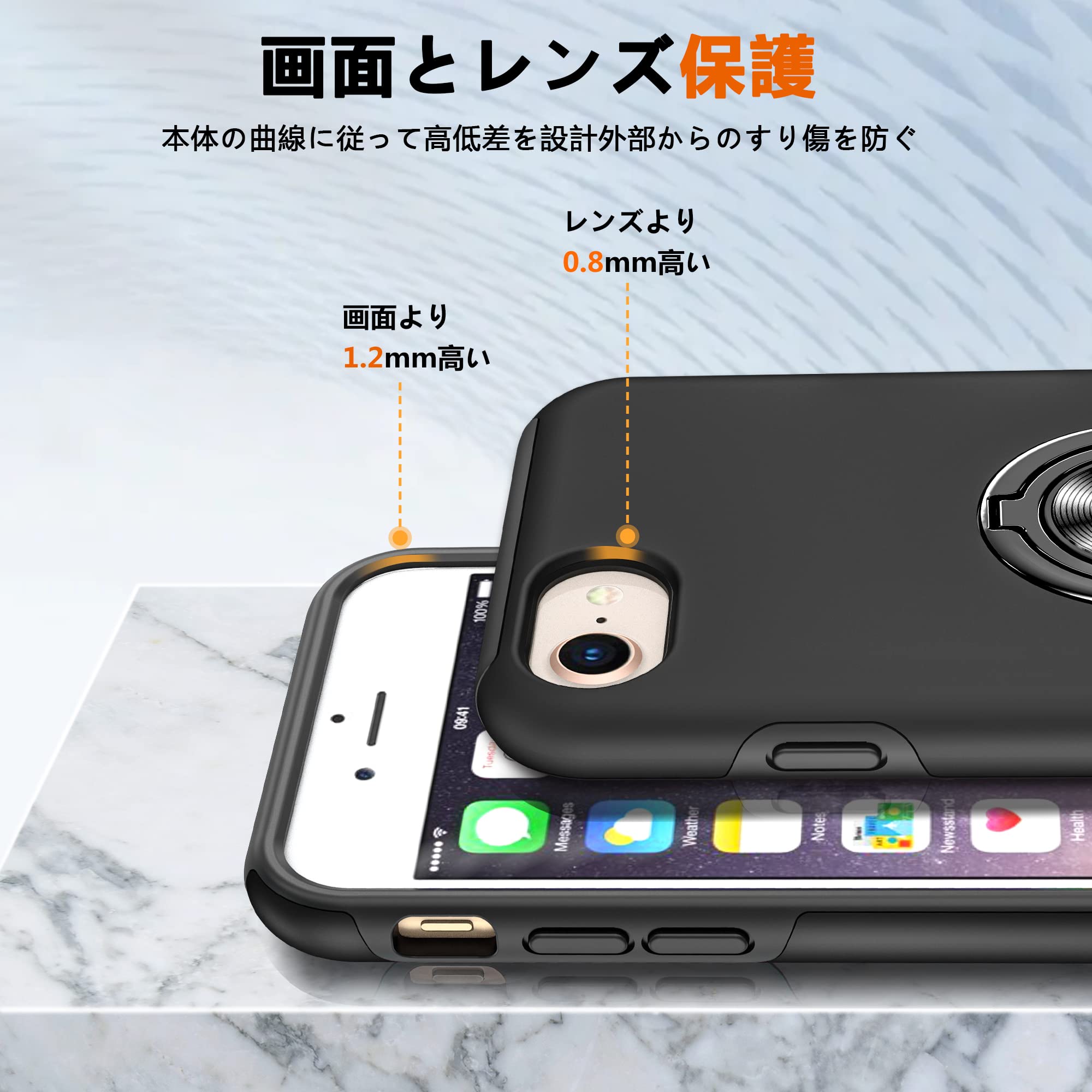 【リング付き・スタンド機能】360度回転可能、90角度調節可能、片手で携帯を操作でき、滑り止め、強奪、落下などのことを防げます。ケースを横置きにするとスタンド機能になり、持たず動画鑑賞などを楽しむことができます。