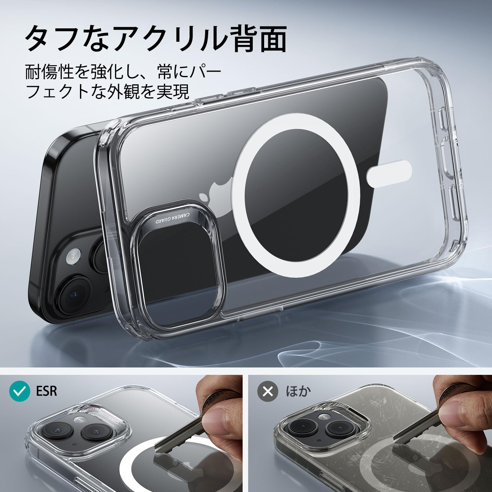 【オリジナルをキープ】傷に強く、透明度の高いアクリル製の背面により、iPhone 15の本来のスタイルを、驚くほど鮮明に保ちます。対応機種: あいほん15ケース