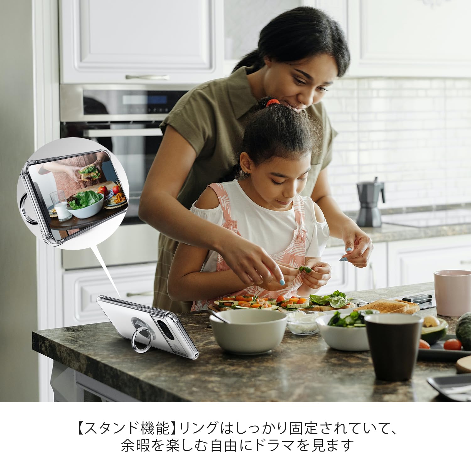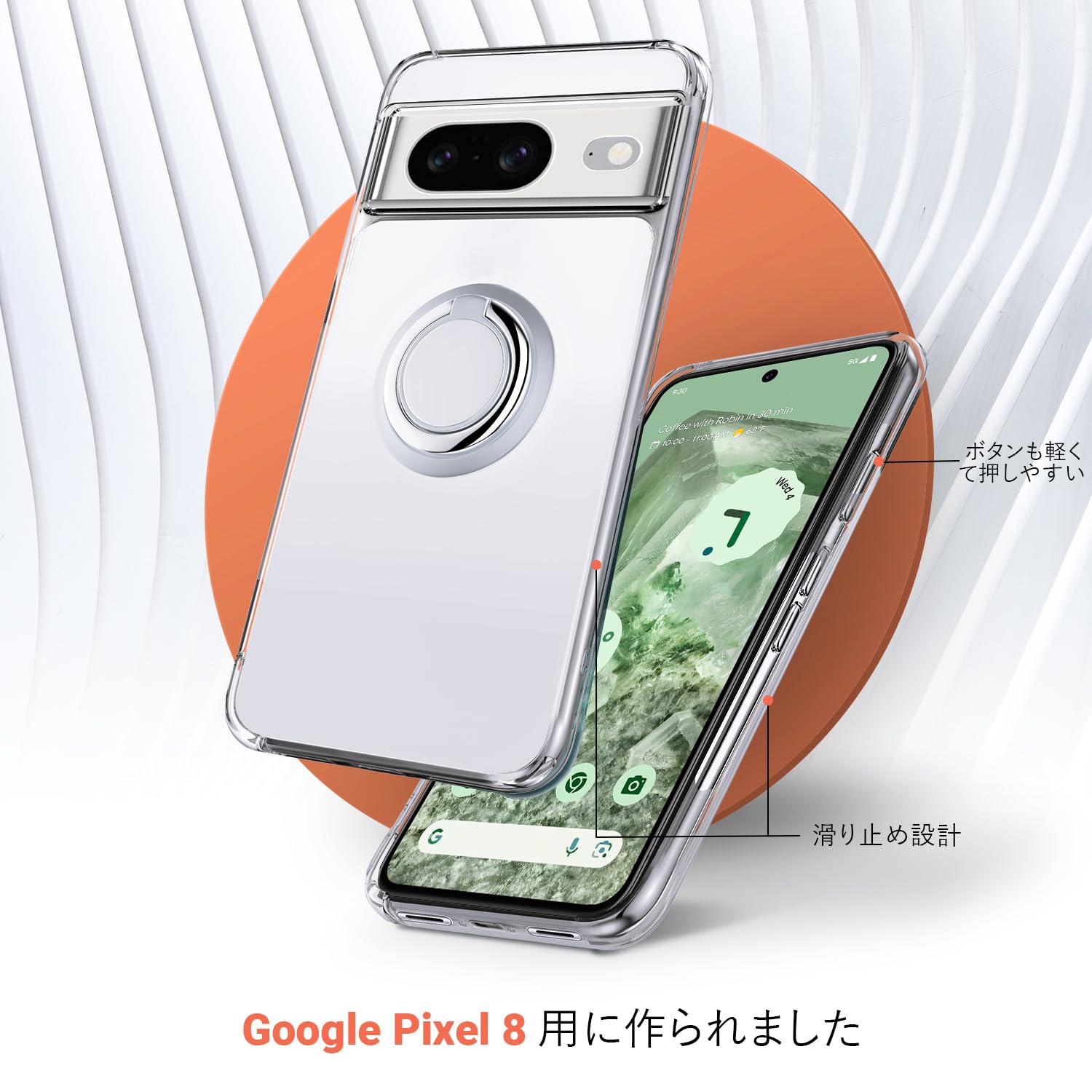 Rockaway Pixel 8 用 ケース リング付き 耐衝撃 すり傷防止 四隅がエアクッション構造 スタンド機能 軽量 薄型 TPU ソフト 透明 バンパー グーグル ピクセル8 カバー - クリア