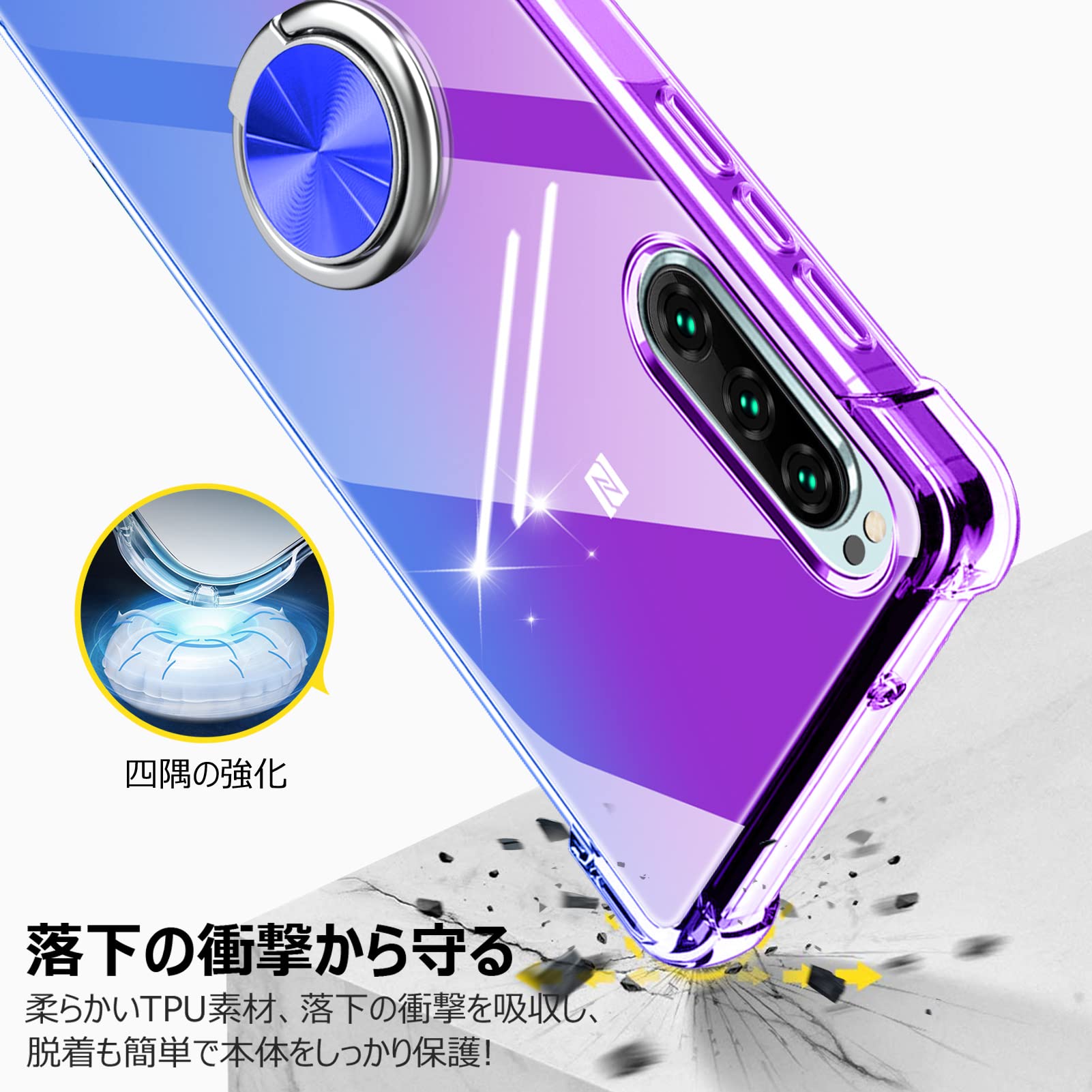 【在庫処分】【Tgaoleyd】AQUOS zero6 ケース クリア リング付き 耐衝撃 グラデーション色 シリコン 軽量 薄型 スタンド機能 衝撃吸収 米軍MIL規格 tpu ソフト レンズ保護 滑り止め 黄ばみ防止 指紋防止 車載スタンド対応 SHG04 ケース 透明 耐久 一体型スマホケース 人気 おしゃれ 携帯カバー 青 D69-58
