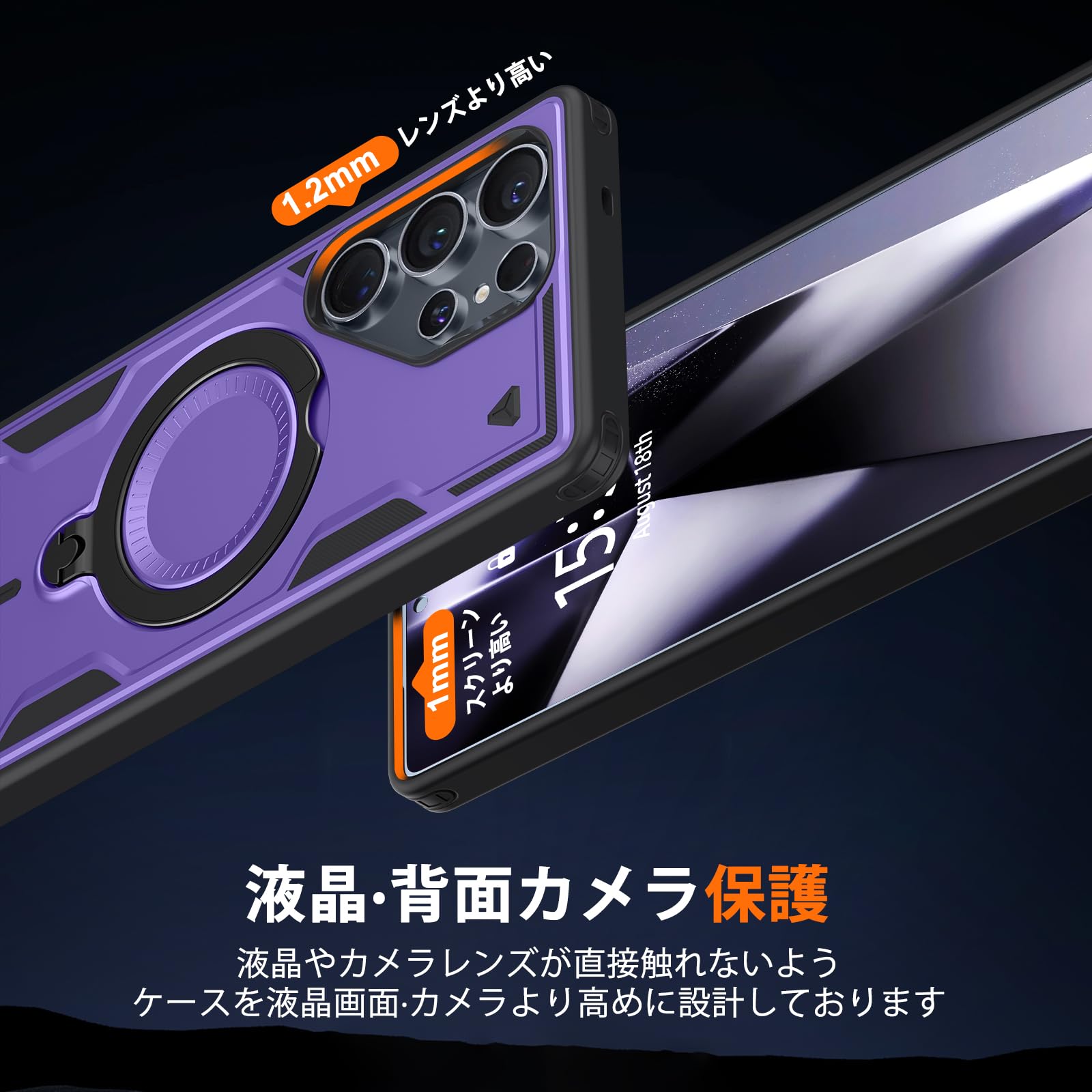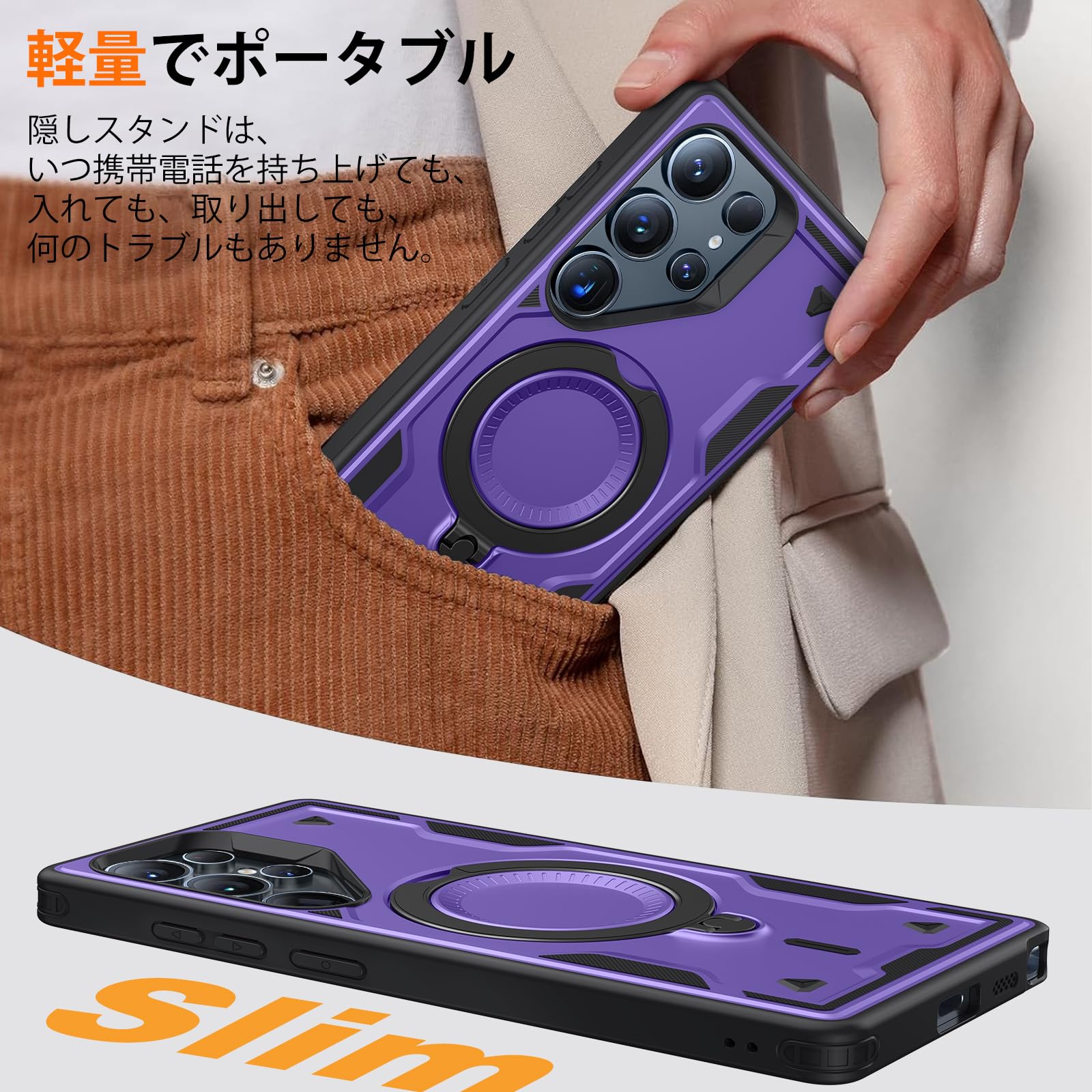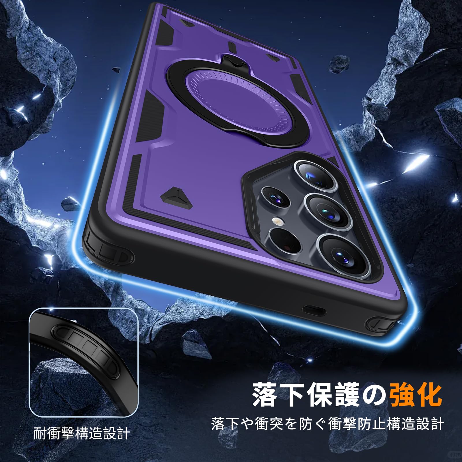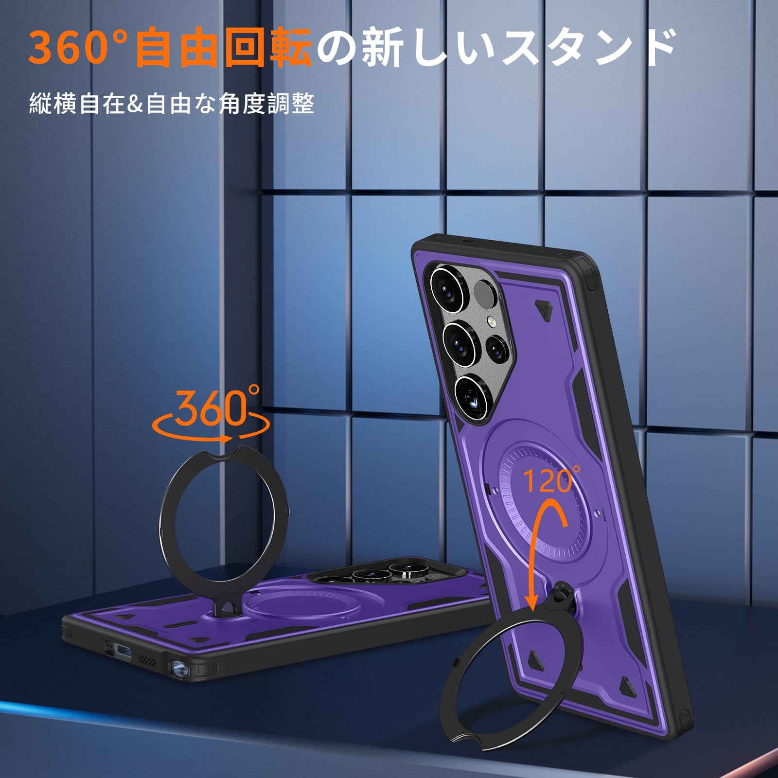 【在庫セール】Galaxy S25 Ultra 用 ケース リング付き 隠しスタンド SC-52F SCG32 ギャラクシー S25 Ultra ケース 耐衝撃 縦横両対応 マグネット搭載 米軍MIL規格 360度回転スタンド 車載ホルダー ワイヤレス充電 携帯カバー 紫 Q-TH-S25U-05
