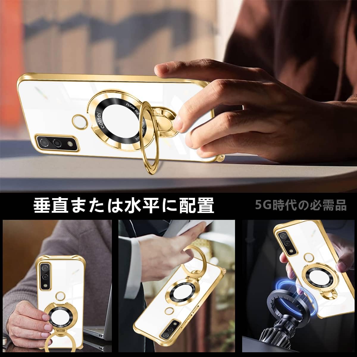 【特価セール】Arrows we ケース クリア ショルダー 透明 リング付き docomo arrows We F-51B FCG01 カバー スタンド機能 マグネット搭載 アローズ we スマホケー ス 120度反転スタンド 耐衝撃 米軍規格 携帯ケース 紐付き 斜めがけ 織りストラップ付き ネックストラップ ショルダー 縦/横 2WAY 長さ調整可能 取り外し可能 紛失防止(ゴールド)