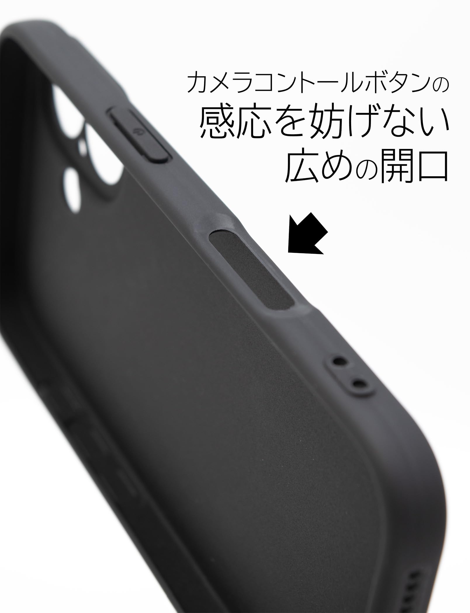 iPhone16 に緻密に合わせて設計。カメラコントロール部はもちろん、底面のマイクやスピーカーの穴まで、ひとつひとつピッタリ合わせて開いています。