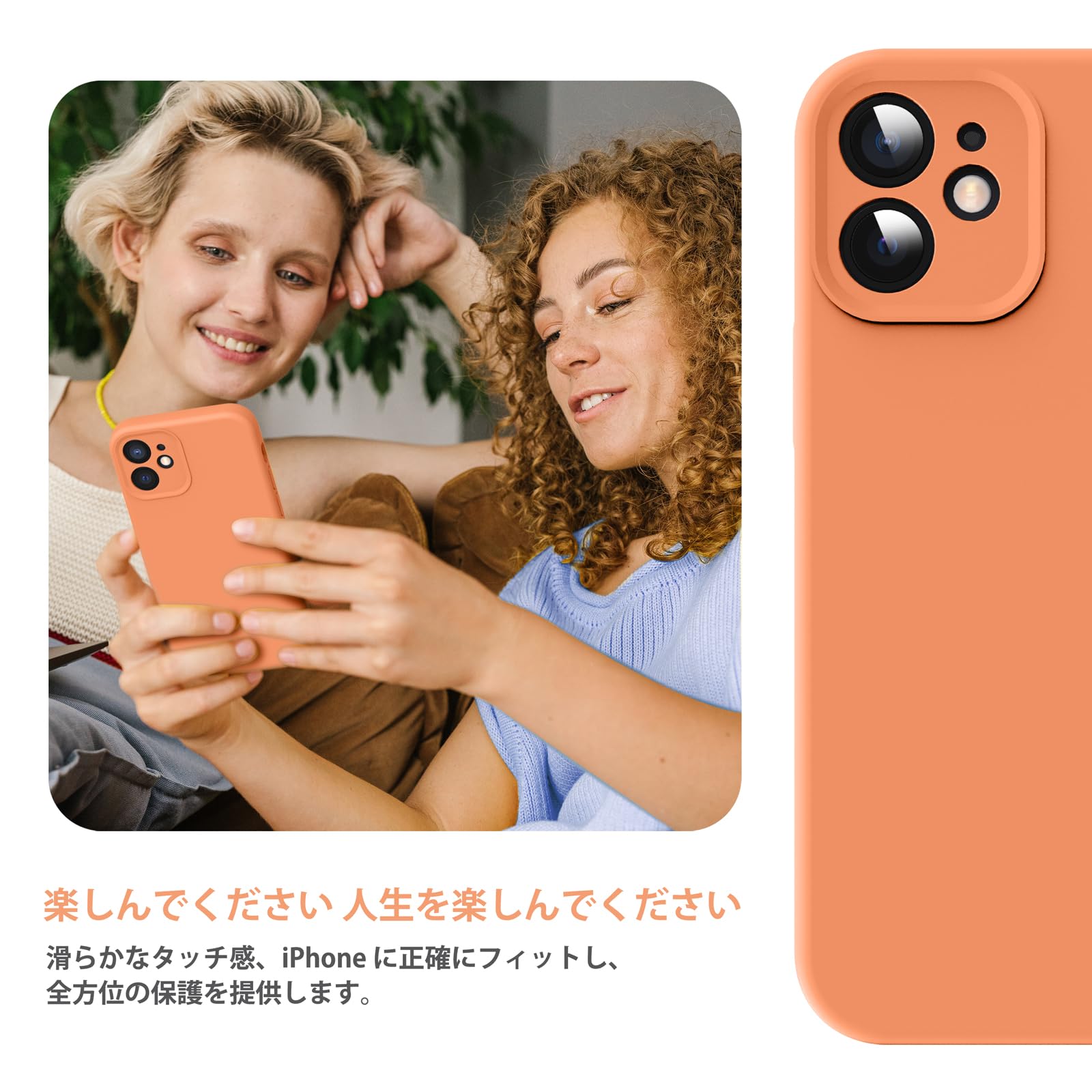 Supdeal iPhone 12 ケース 対応液体シリコン [耐衝撃] [柔軟TPU液体シリコン] [ソフトタッチ] [レンズの全面保護] [指紋防止] [落下防止] [滑り防止] 軽量 4層保護 アイフォン 12 スマホカバー 6.1インチ(オレンジ)
