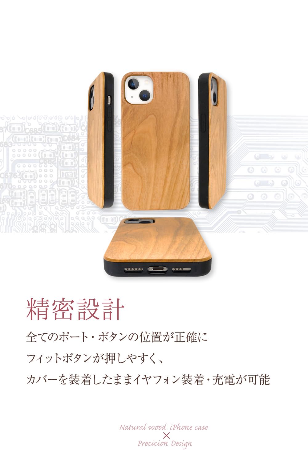[Pretimo] iPhone 16 ケース 天然木 木製 ウッド 桜の木 ワイヤレス充電対応