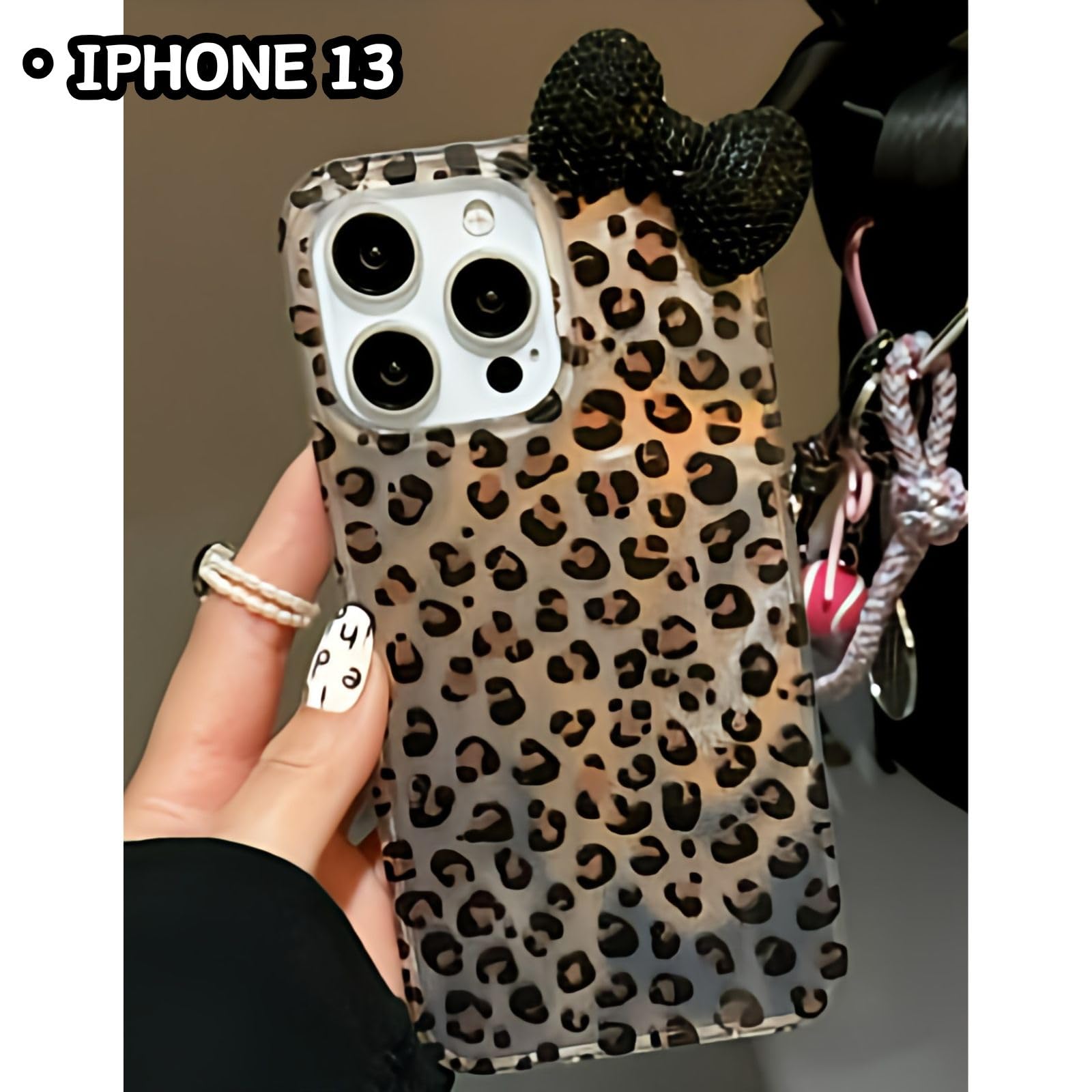 【特価商品】スマホケース ギャル リボン コギャル グッズ 女子高校生 キラキラ 地雷系 韓国 可愛い ヒョウ柄 ラメ 11 12 13 14 15 16 plus pro max(ヒョウ柄リボン13)