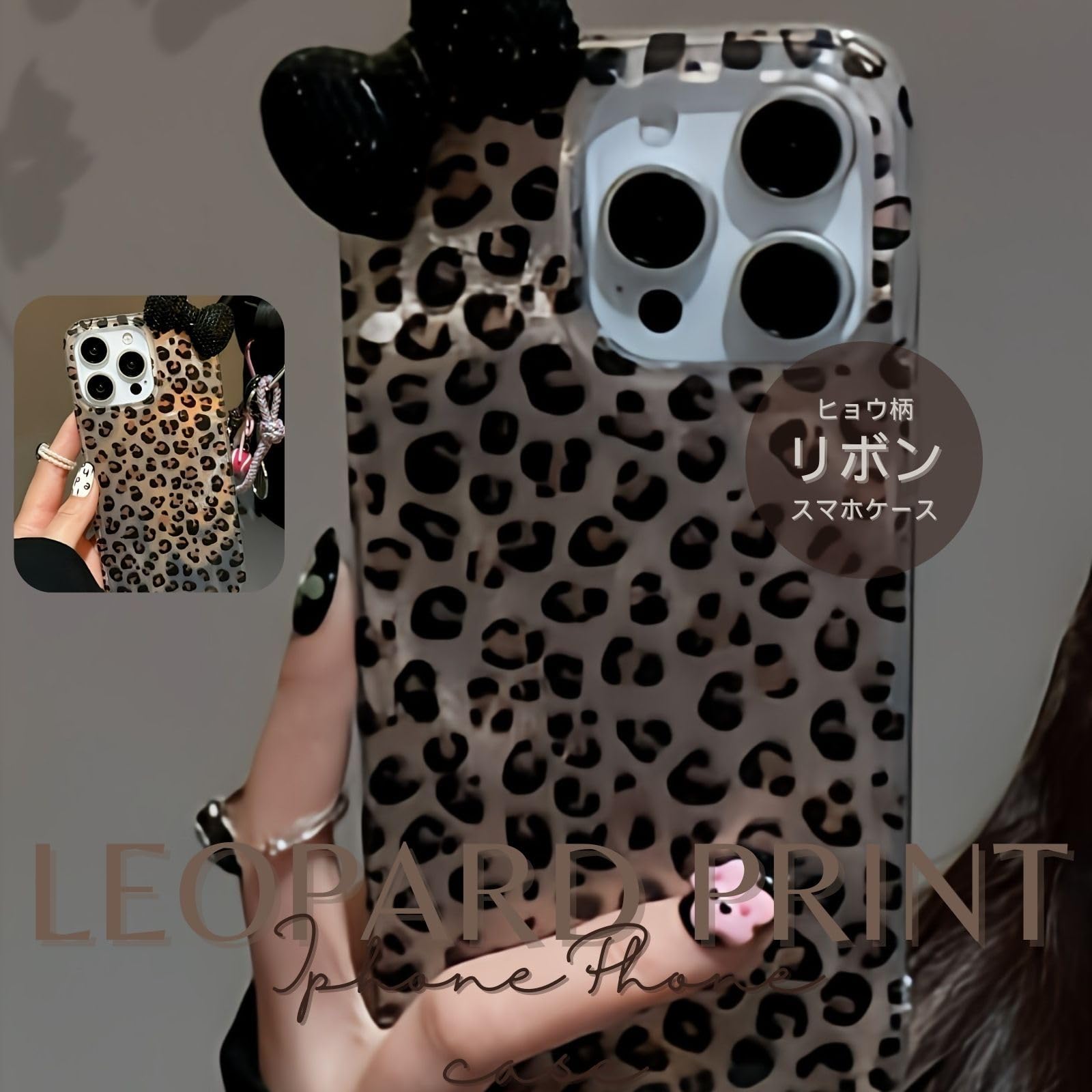 スマホケース ギャル リボン コギャル グッズ 女子高校生 キラキラ 地雷系 韓国 可愛い ヒョウ柄 ラメ 11 12 13 14 15 16 plus pro max(ヒョウ柄リボン13)