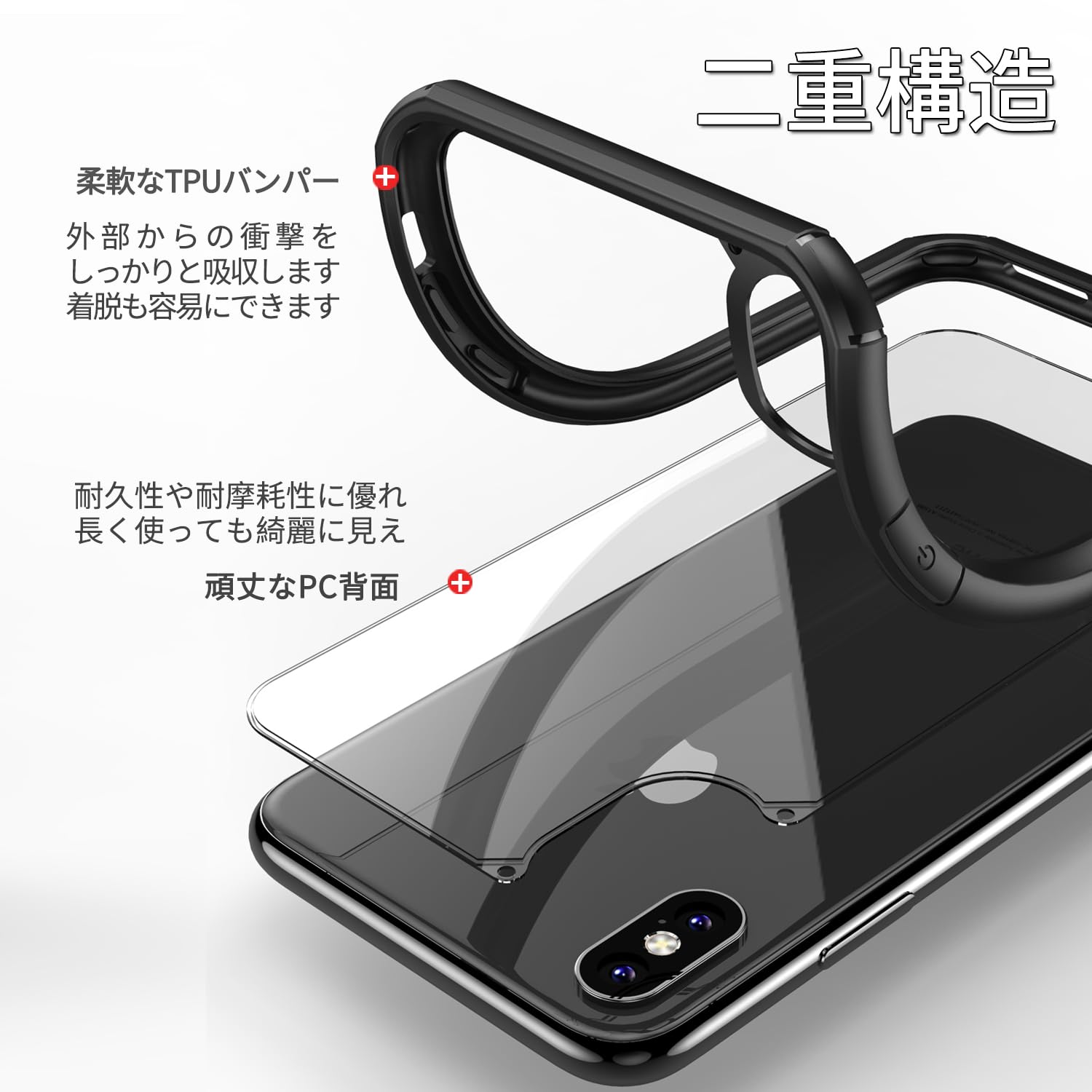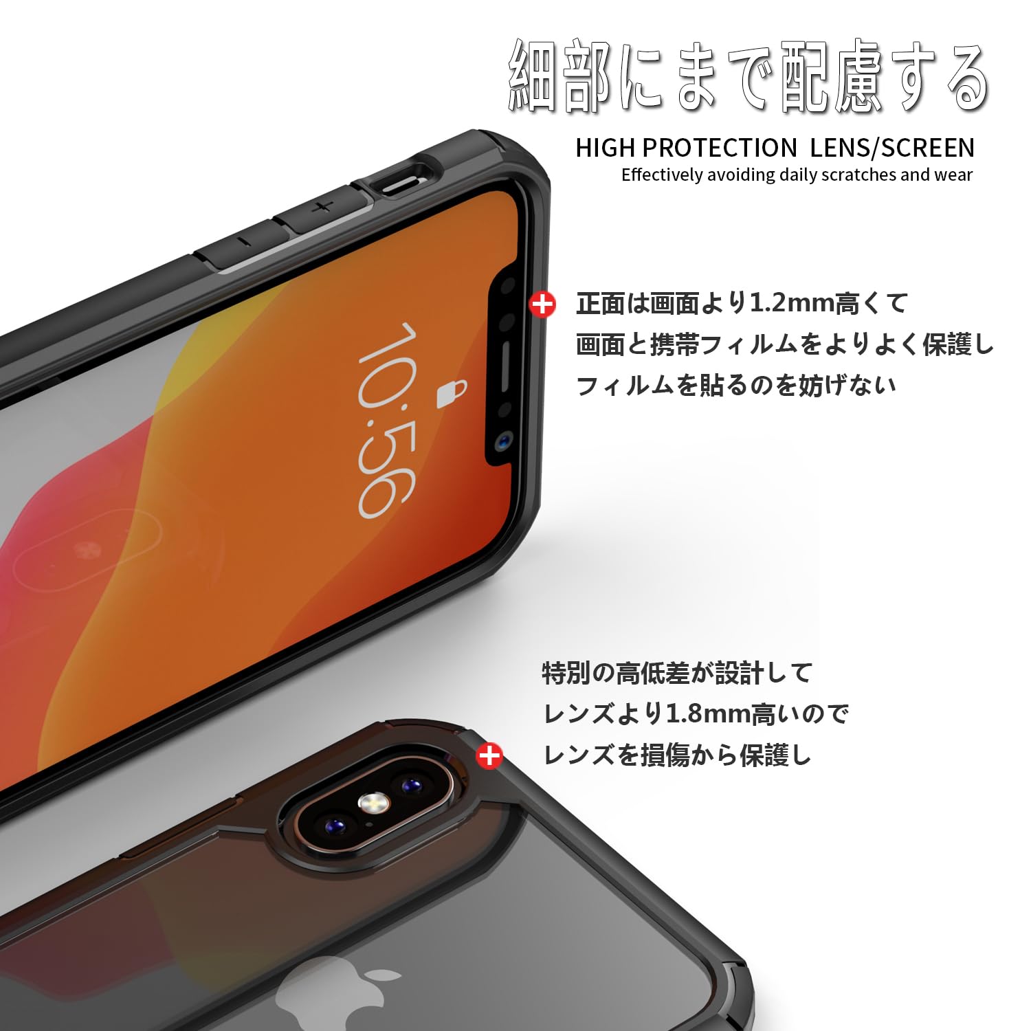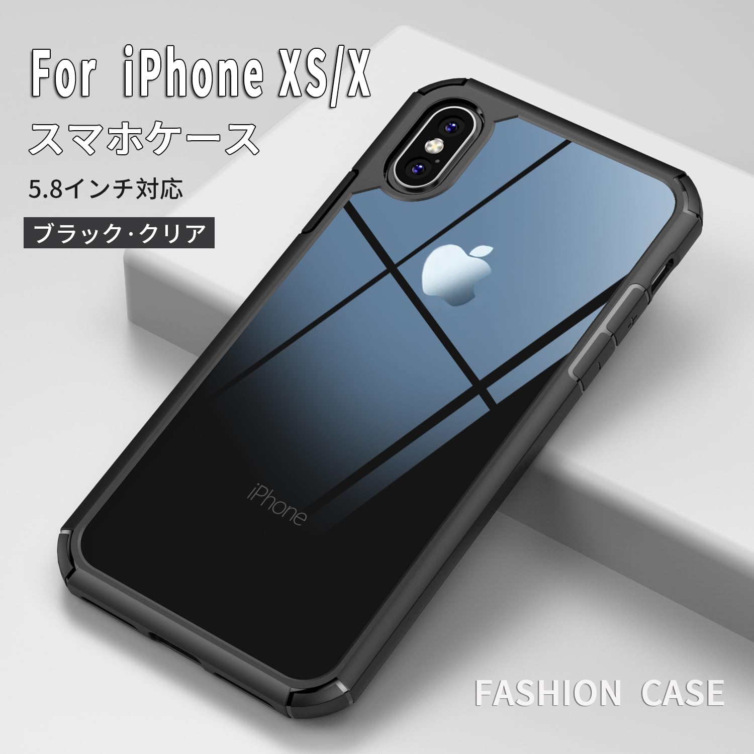 Eazaki ケース iPhone XS 用 iPhone X 用 軽量ケース 透明 耐衝撃 黄変防止 指紋防止 滑り止め スレ傷防止 耐久性 5.8インチ用 アイフォンXS/X スマホケース カバー ストラップホール付き(ブラック-クリア)
