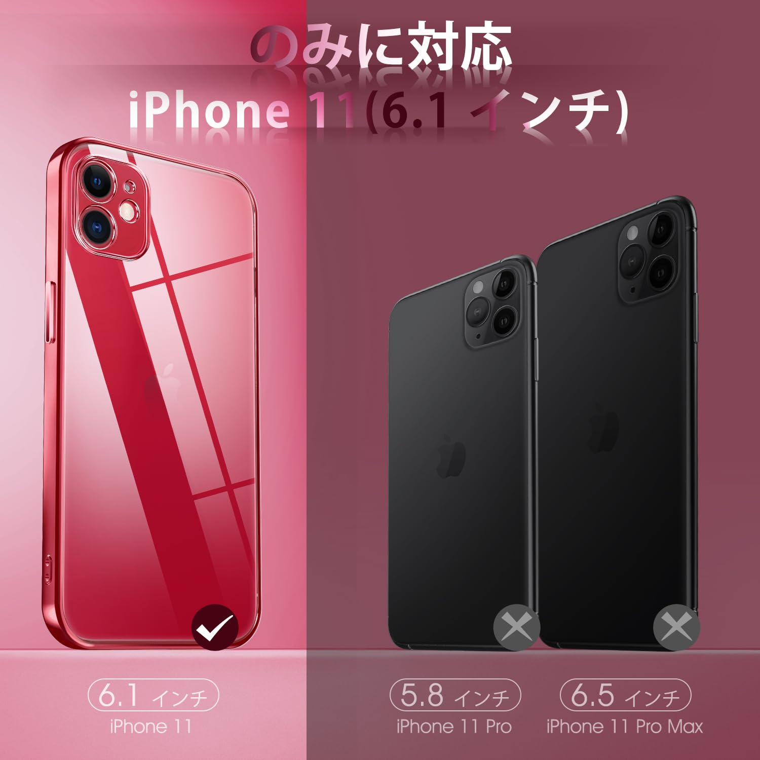 Supdeal クリスタル クリアな電話ケース対応iPhone 11,[カメラレンズ保護][シリコン高精細透明][黄変しない][極薄でソフトな素肌感覚][耐衝撃]アイフォン 11 スマホカバー衝突防止エアバッグ付き,6.1インチ(レッド)
