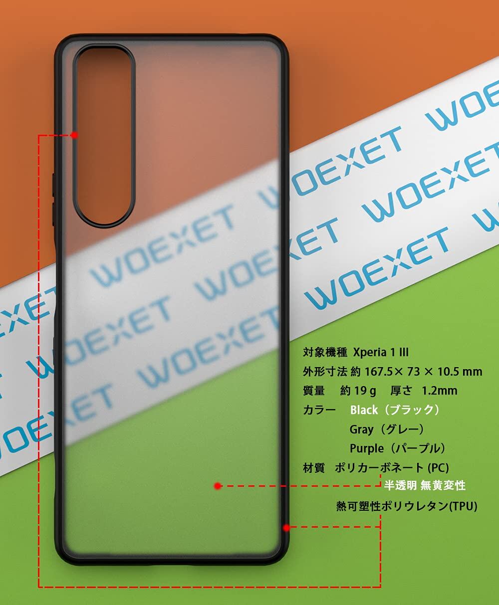 [WOEXET] Xperia 1 III ケース SO-51B SOG03 カバー 薄型 耐衝撃 半透明 無黄変性 PC+TPU Xperia1 iii ハイブリッドケース マット クリア+ブラック