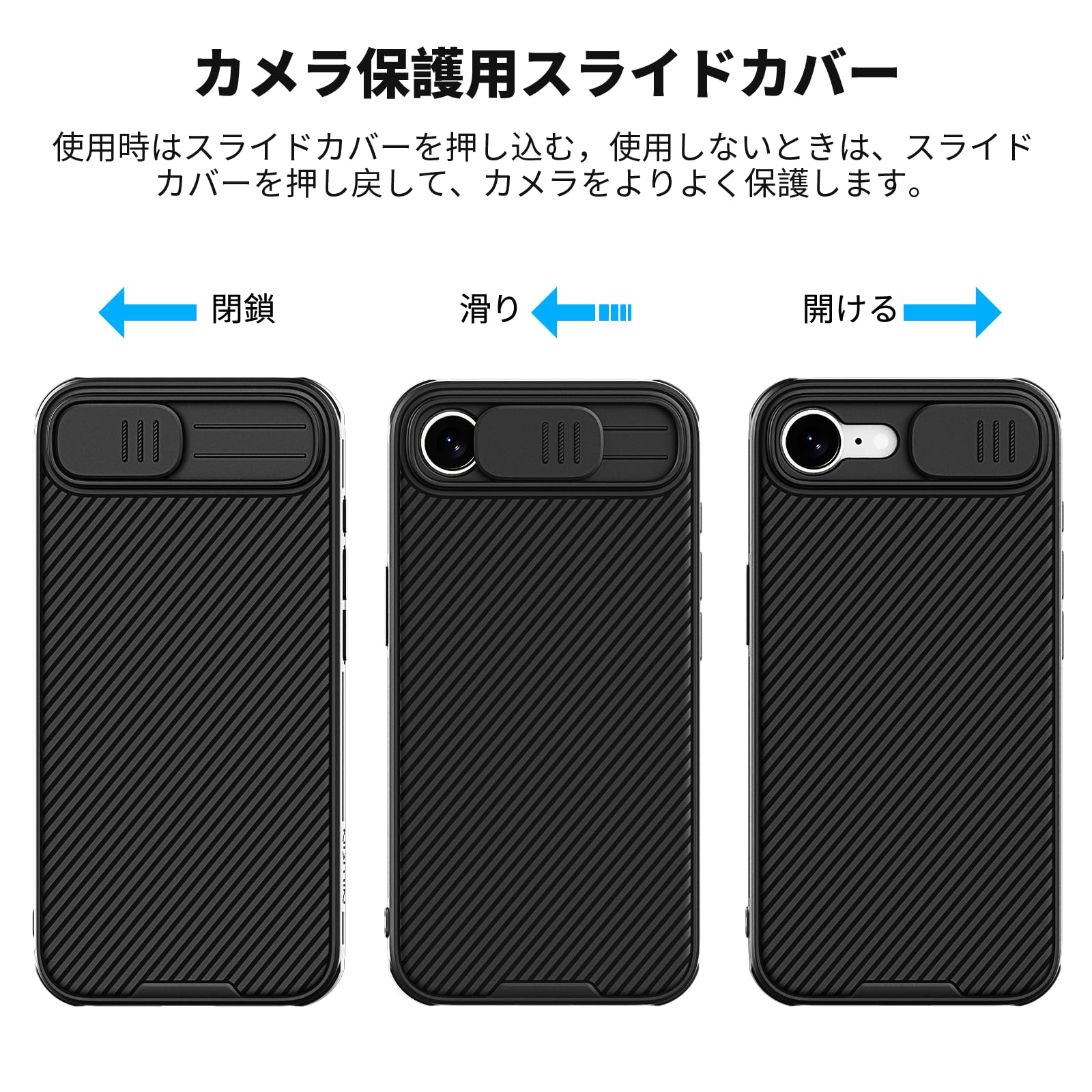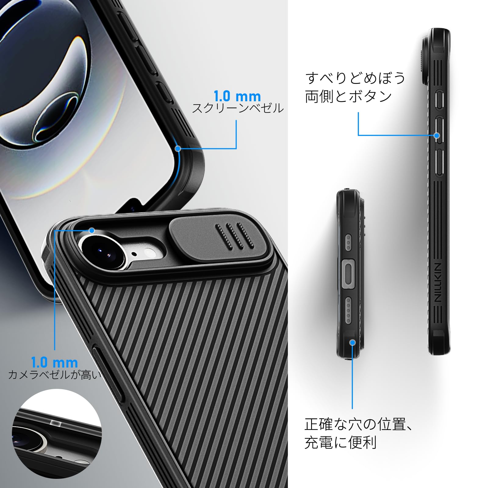 【スライダーのデザイン】Nillkinのユニークなデザインの For iPhone 16e ケース、カメラレンズスライダー保護デザインの特許であり、レンズを完全に保護します。プライバシーの漏洩を防ぐための覗き見防止。