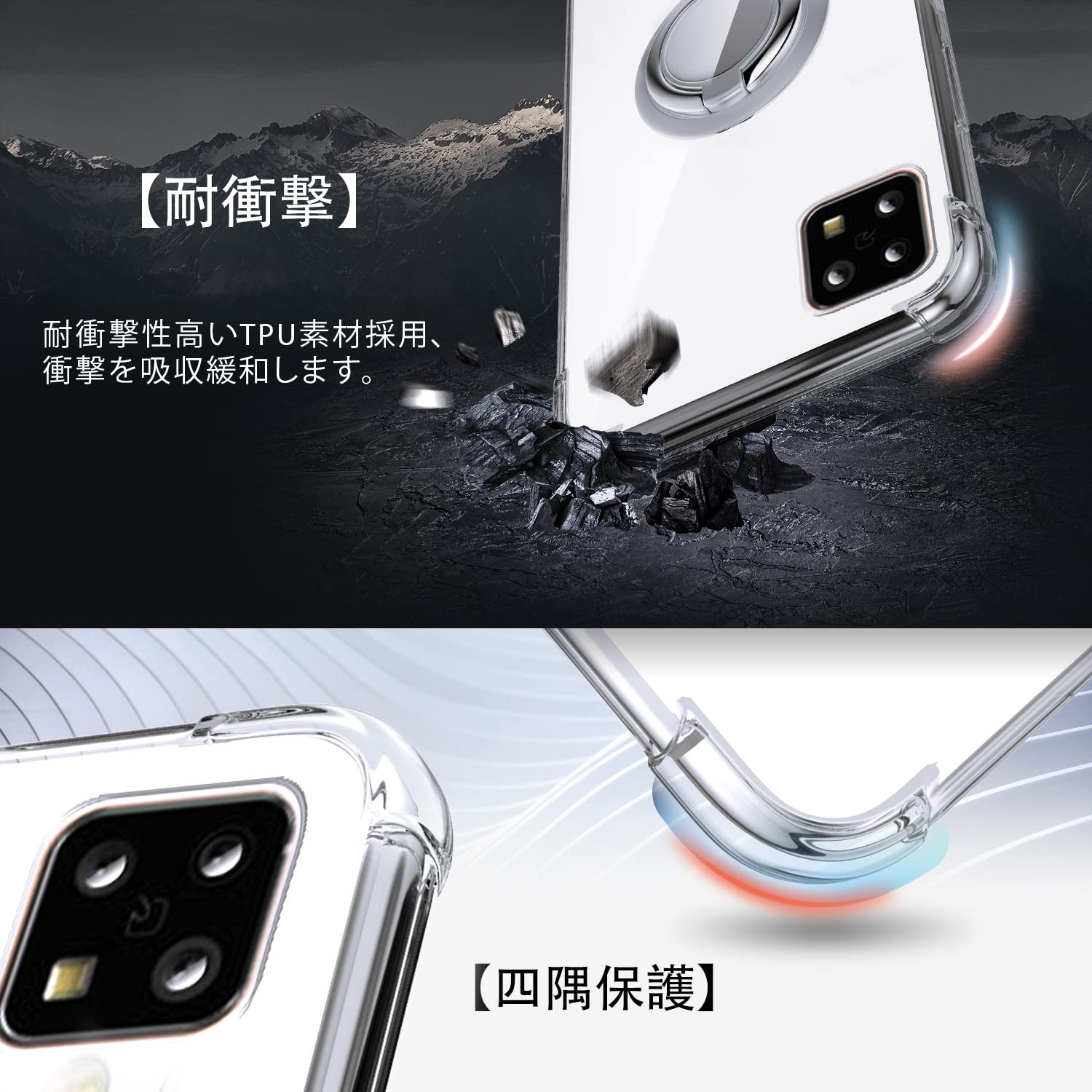 【特価セール】SHIELDS UP AQUOS sense5G ケース リング付き AQUOS sense4/sense4 lite/sense4 basic ケース [SH-53A] [SHG03] [SH-41A] [A003SH]対応 耐衝撃 耐久 すり傷防止 滑り止め 軽量 薄型 クリア TPU 透明 カバー - クリア