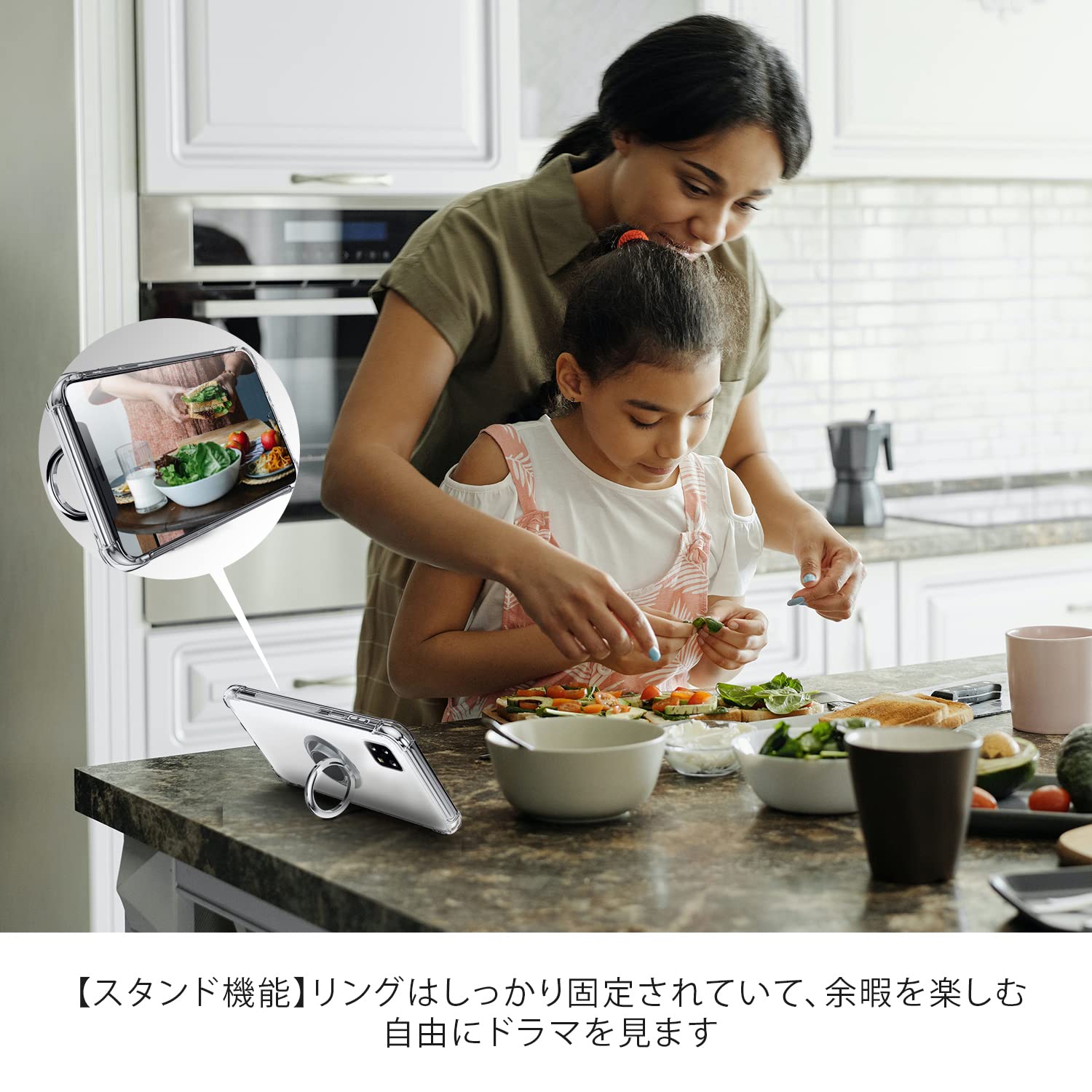 【リング付き&スタンド機能】リングは360度回転可能で、180度の角度調節も可能です。ケースを横置きにするとスタンド機能になり、持たずに動画鑑賞などを楽しむことができます。指をリングに通して一本指で持つことで、片手で携帯電話を操作でき、落下を防止します。