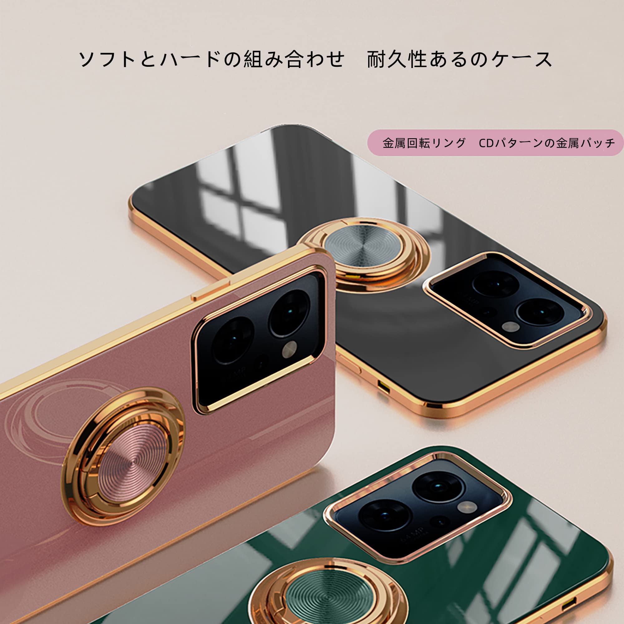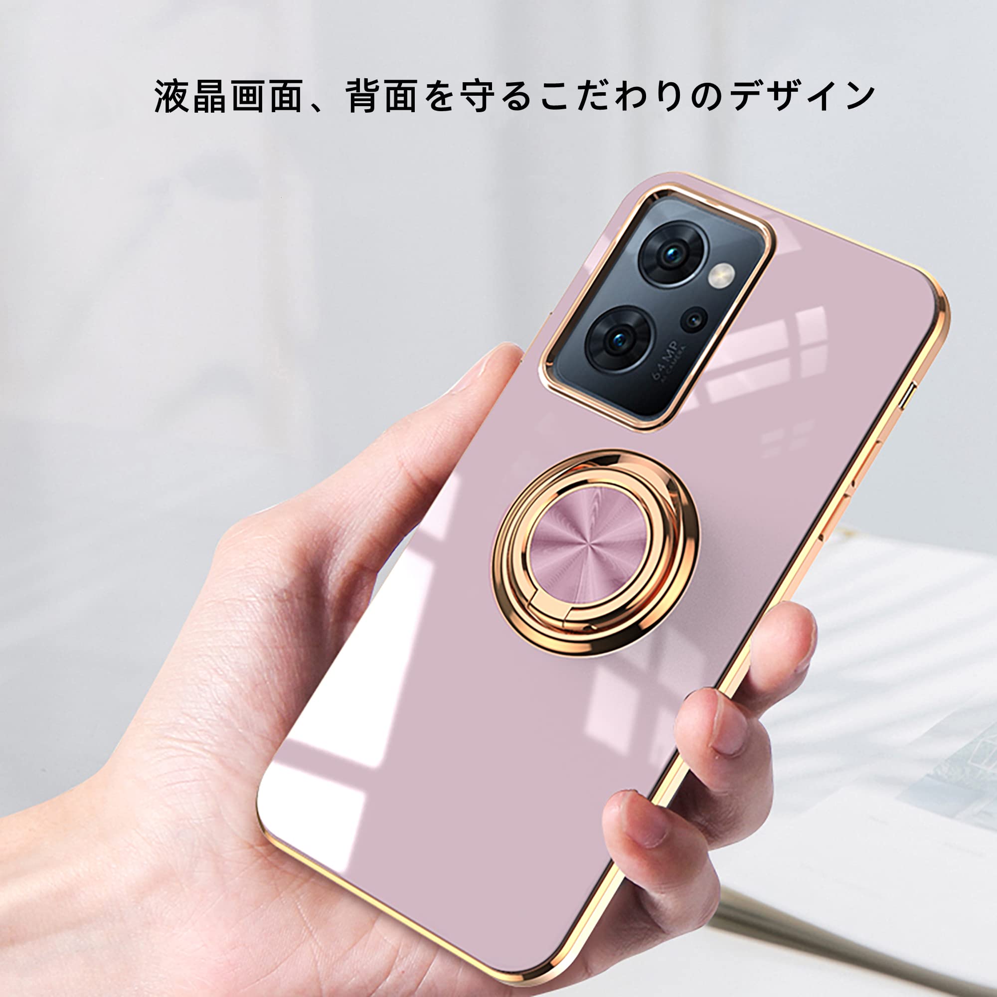 【スタンド機能】後ろで嵌め込み式リング付き、伝統的なリングと比較して、スマートフォンの水平安定性を維持することができます。ケースを横向きにするとスタンド機能になり、360度回転と100度調節可能です。マグネット対応金属板採用し、車載ホルダーに強く吸着することもできます。