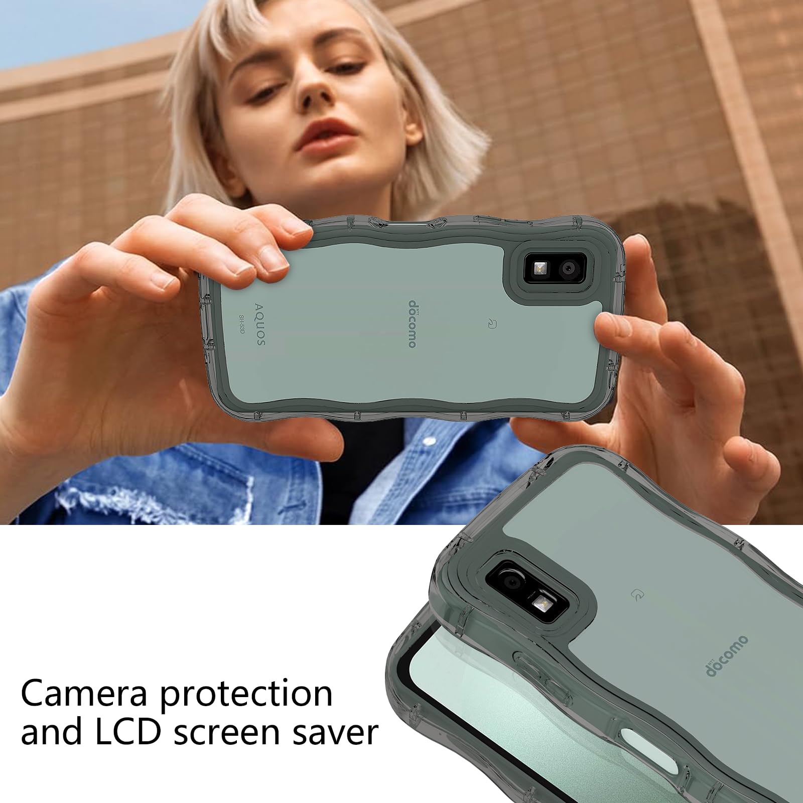 AQUOS wish3 ケース クリアブラック ウェーブ SH-53D TPU波状のバンパー 半透明 スマホケース かわいい うねうね アクオス ウィッシュ3 SH-53D ウェーブ デザイン 可愛い 韓国 女性用 薄型 人気 おしゃれ 耐衝撃 AQUOS wish3 ストラップホール付き(Wish 3-ブラック)