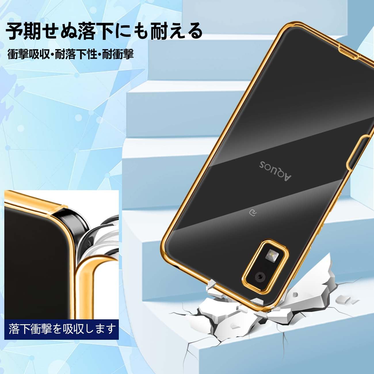SHARP AQUOS wish wish2 ケース SH-M20 SH-51C SHG08 SHG06 A104SH A204SH クリア メッキ加工 耐衝撃 カバー 衝撃吸収 携帯ケース アクオス ウィッシュ ウィッシュ2 透明な背面 ケース TPU スマホケース 指紋防止 滑り止め ソフト ケース カメラ保護 薄型 wish wish2 case (ゴールド)