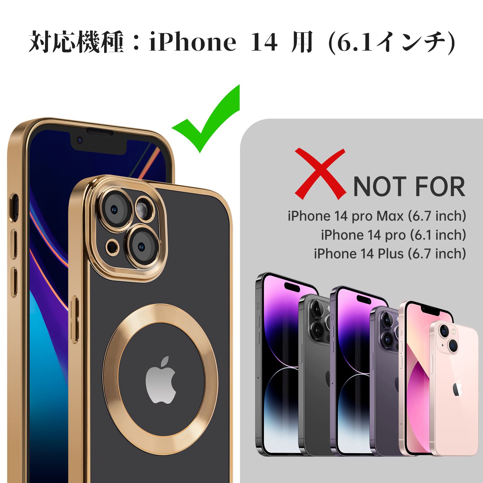iPhone14 ケース MagSafe対応 2023新型 iPhone 14用 ケース耐衝撃 米軍MIL規格 アイフォン14用 指紋防止 黄変なし 耐久性 iPhone 14 カバー 磁気ケース6.1インチ ワイアレス充電対応 (ゴールド)