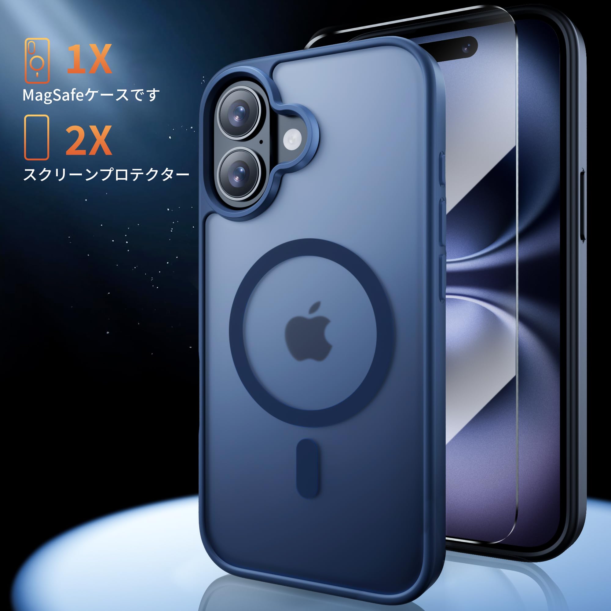 Bruzaio iPhone 16 用 ケース【強化フィルム2枚付き】Magsafe対応・米軍規格 いphone16 ケース 半透明 耐衝撃 指紋防止 滑り止め マグネット搭載 ワイヤレス充電 耐久性 全面保護 黄ばみなし あいほん16スマホケース 6.1インチ用,ネイビー