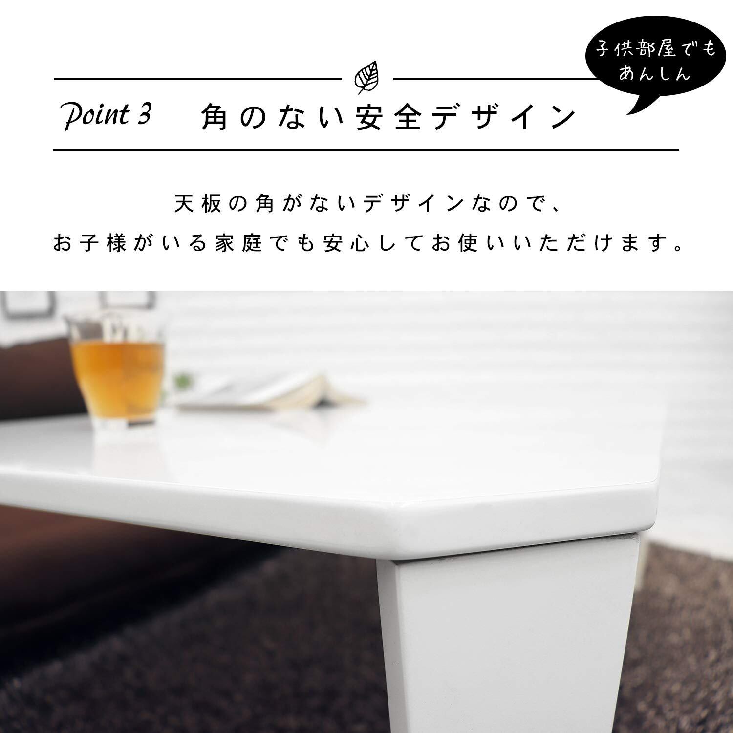 【角を取ったデザインの安心設計】天板の角を取り、お子様のいる家庭でも安心してお使い頂けるように配慮したデザインに仕上げました。