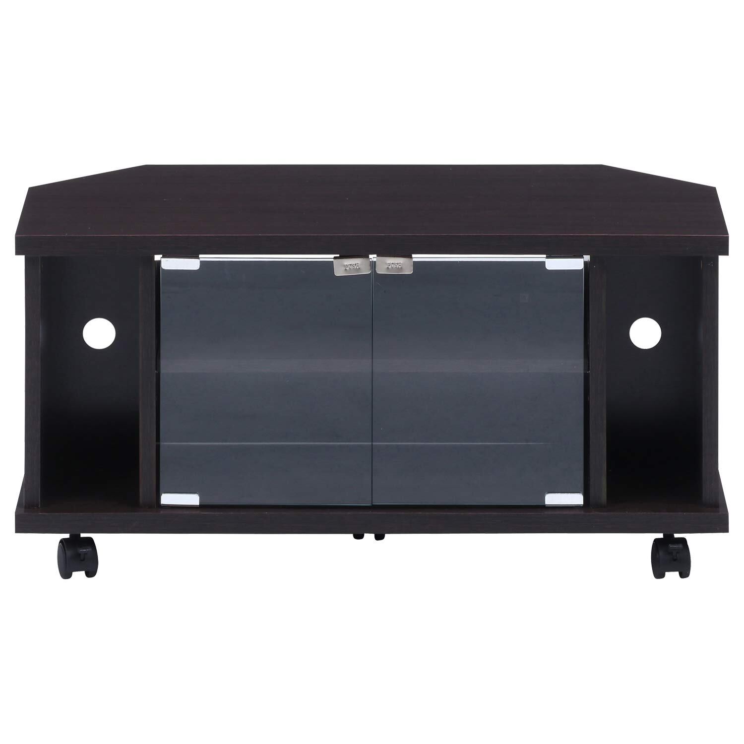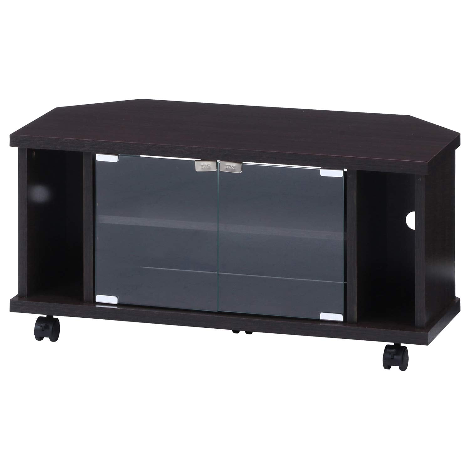 不二貿易 テレビ台 TVボード 32型対応 幅78.5×奥行38.5×高さ39cm ブラウン キャスター付き ガラス扉 コーナータイプ 99267