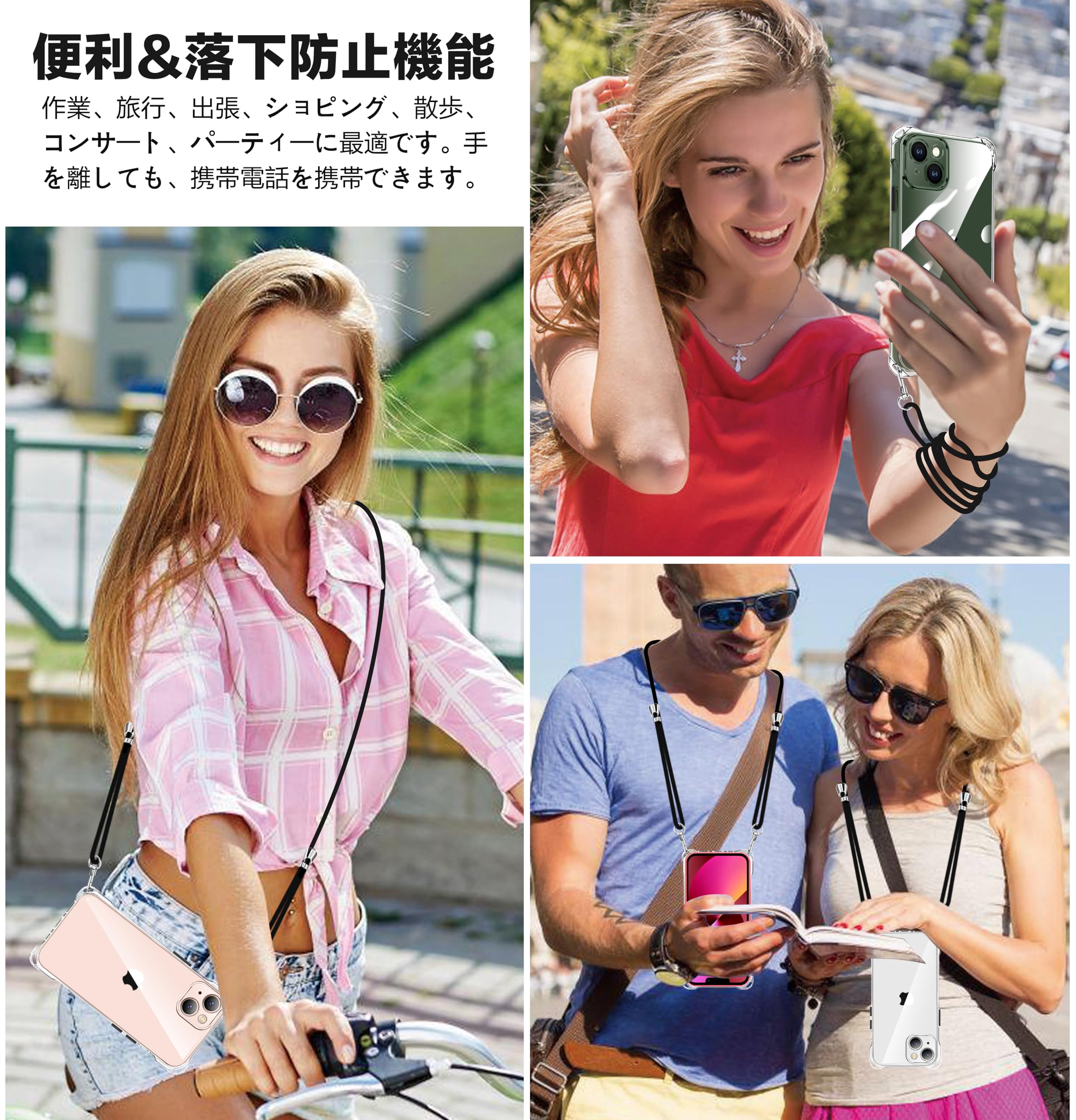 【新着商品】iPhone 13 mini ケース クリア ネック ショルダー ストラップ付き iPhone13 mini スマホケース アイフォン 13 mini カバー 耐衝撃 薄型 軽量 TPUスマホ シリコン カバー 紐付き 斜めがけ 織りストラップ付き 肩掛け 縦/横 2WAY 調節可能なショルダー クロスボディ 多目的キャリー ファッションデザイン (透明)