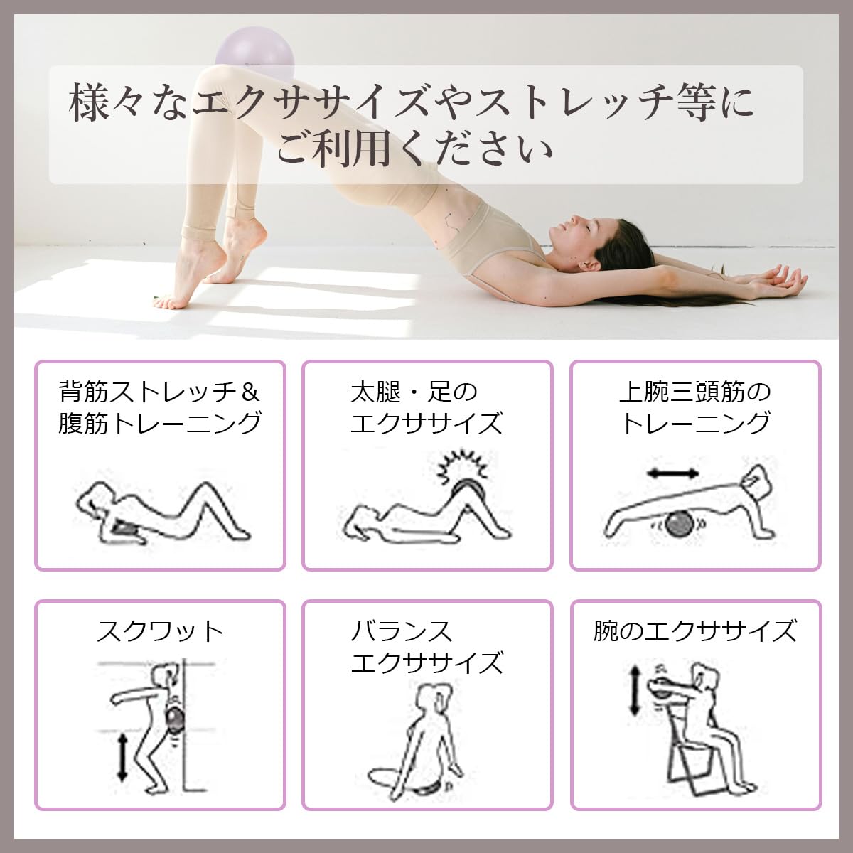 【健康的なライフスタイルをサポート】 20cmと25cmのピラティスボールセット ご自身のトレーニングに合わせてボールのサイズを調節することが可能です。 空気を少なくすることでボールが安定し、難易度が低くなり、初心者の方にもおすすめです。 慣れてきたら空気を増やして、トレーニングの負荷を増やしていきましょう。 ピラティスやストレッチ、筋力トレーニングに最適です。普段意識することが難しい、身体の深層部にある筋肉や腹筋などを効率よく鍛え、バランス感覚や柔軟性を向上させたり、体幹を鍛えることができます。 【多様なトレーニングに対応】 ボールの上に乗ったり、両足・両手で挟む、ボールの上に背中を乗せて転がす、ポーズを楽に行うための補助として使う、クッションや枕代わりとして使う等、ピラティスだけではなく様々な用途に活用することができます。
