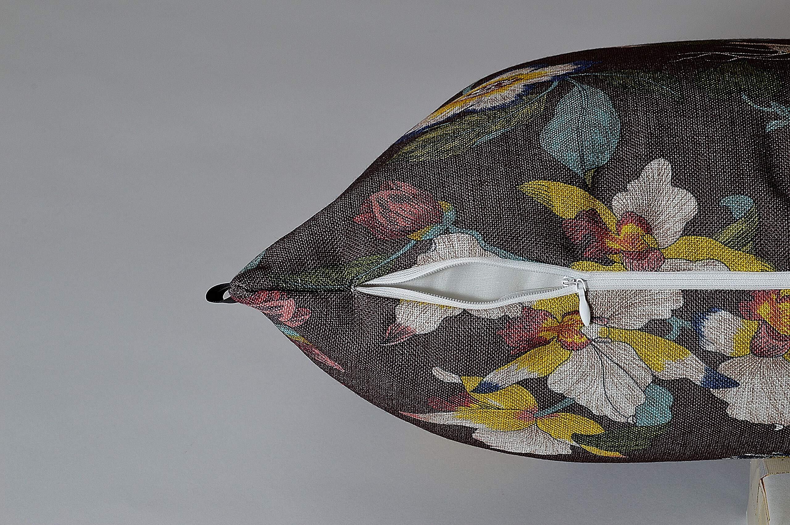 【在庫セール】Kuai クッションカバー 45cm 60cm 30×50cm 花柄 オリエンタル アンティーク シノワズリ アジアン 北欧 インテリア ポリエステル (45×45cm ブラック)