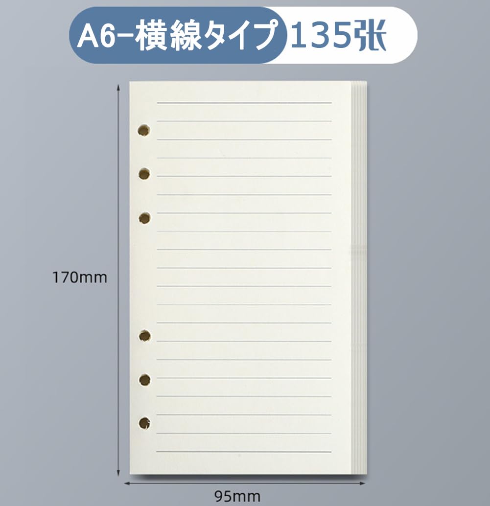 手帳リフィル システム手帳リフィル ルーズリーフ用 バインダー用 バイブル A6サイズ 横罫 ビジネス手帳 専用リーフ リフィル用紙 詰め替え用紙 厚型 A6 6穴 45枚*3冊