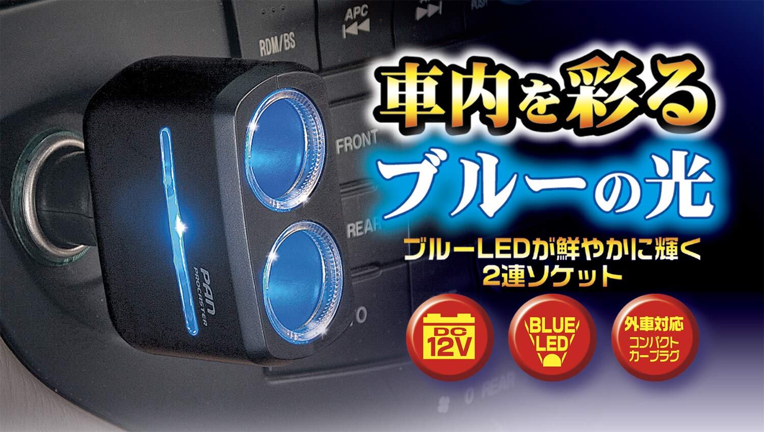 車内のシガーライターソケットに差し込み、電源を2極に分配可能。ブルーLED使用でシリンダーリングとサイドラインが、ブルーに発光。