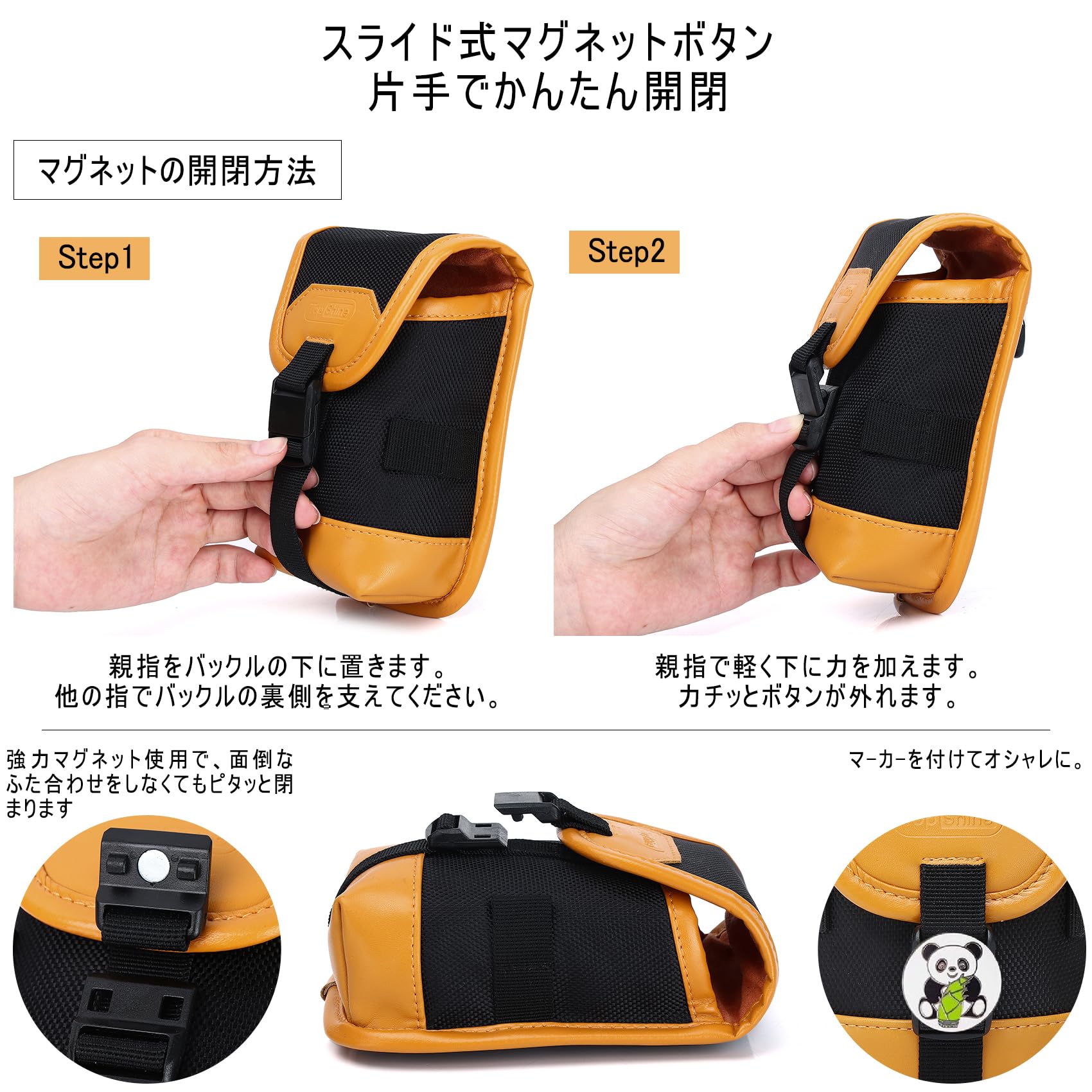 【シーンに合わせてコンパクトサイズに】 マグネットのバックル位置を調整するとポーチの高さをコンパクトにできます。高さ13-15cmの範囲で調整可能です。収納物や用途にに合せてご利用ください。