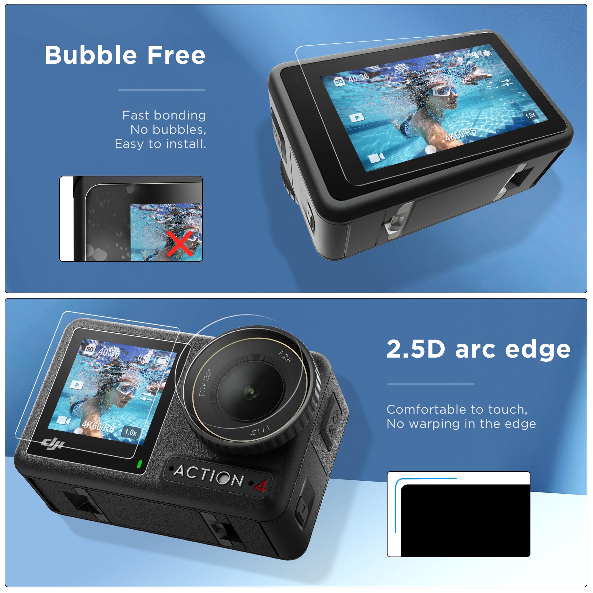 【高透明】DJI Action 4スクリーンセーバーは99%の高精細度、99%の透過率を持ち、DJI OSMO Action 4の明るさと多彩な画質、高応答、高透明度を維持します.