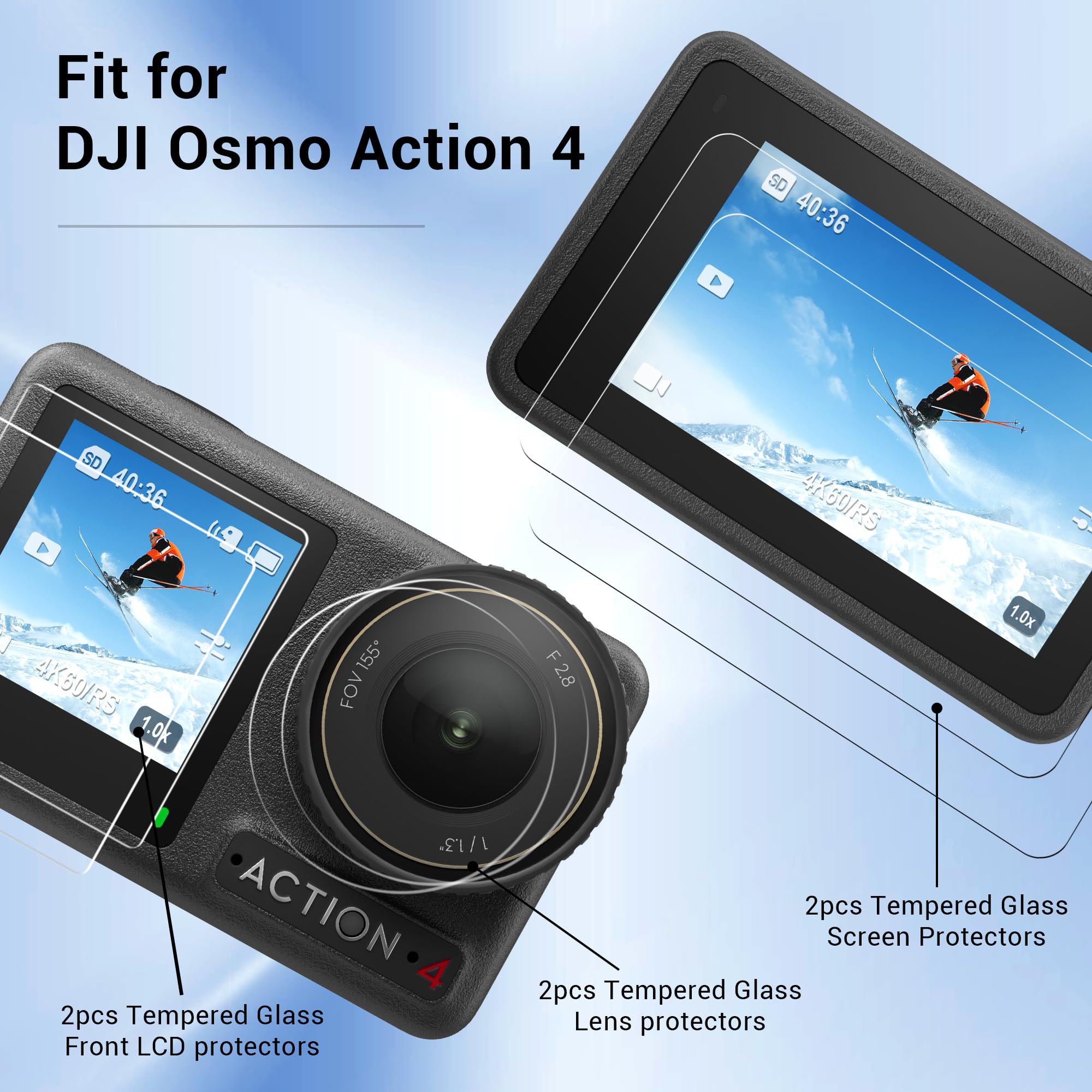 【対応機種】Dji Osmo Action 4.【メイン画面用2枚+サブ画面用2枚+カメラレンズ用2枚】