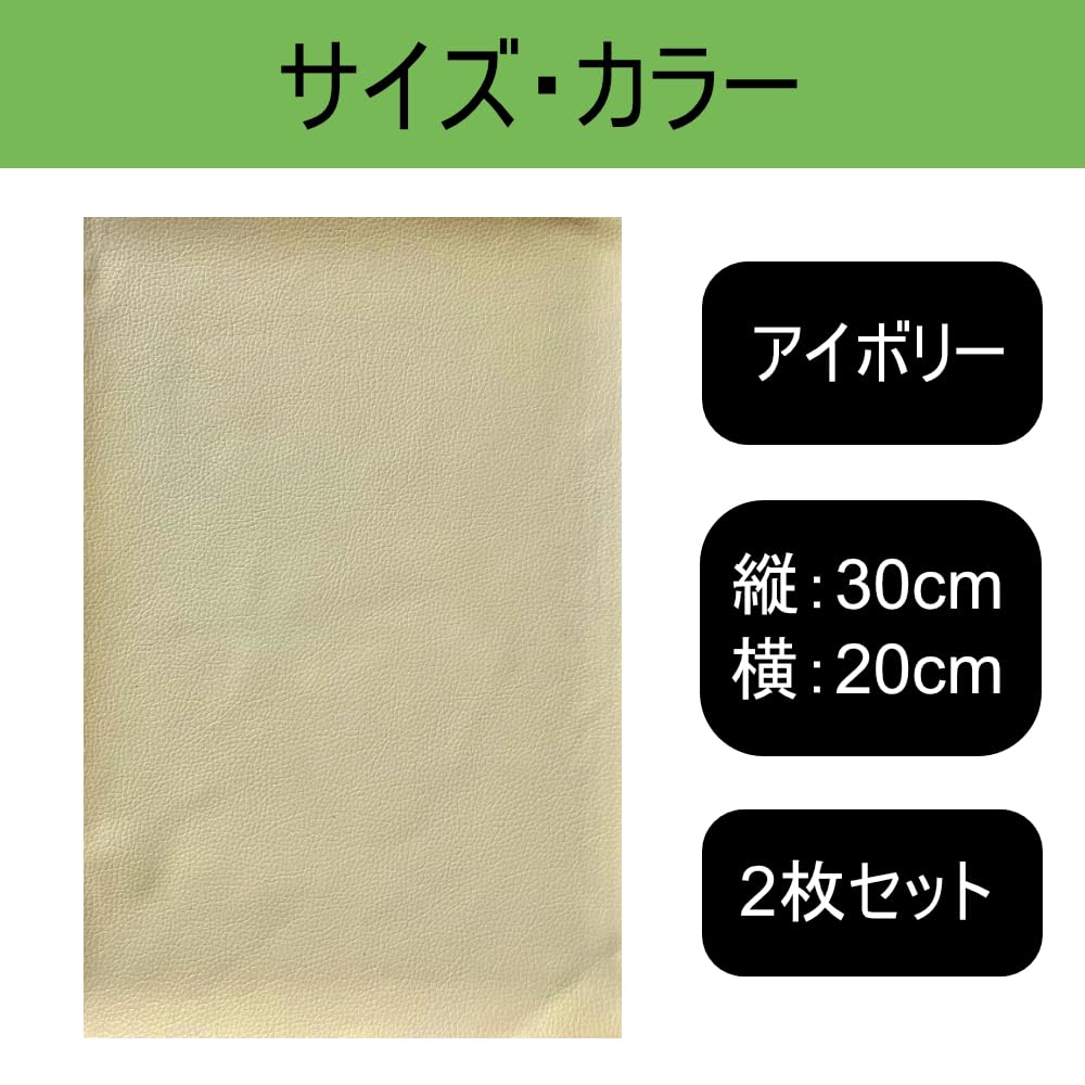 【在庫セール】合皮 補修シート 20cm×30cm 2枚セット ソファー補修 バイクシート補修 強力粘着 【homexk】 (アイボリー)