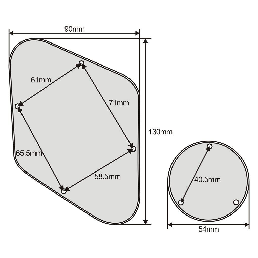 このピックガードを購入する前に寸法を確認してください、このピックガードは2つのネジ穴があり、距離は約137ミリメートル/ 5.39in.And二つのピックアップの間のスペースは約57ミリメートルです。