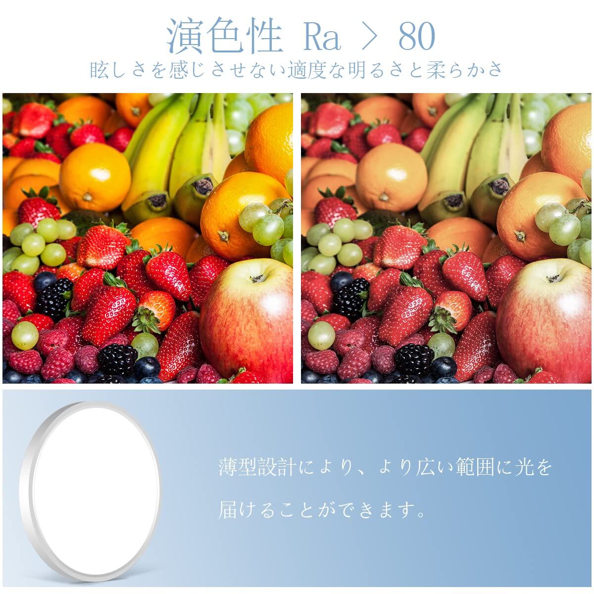 トリプル色相ライト+高演色:色温度調整可能:3000k-6000k、昼光色/昼白色/電子球色、演色性Ra>80、物体の自然光に近く、目に優しく、食品や装飾品をより美しく、自然な色に仕上げます。