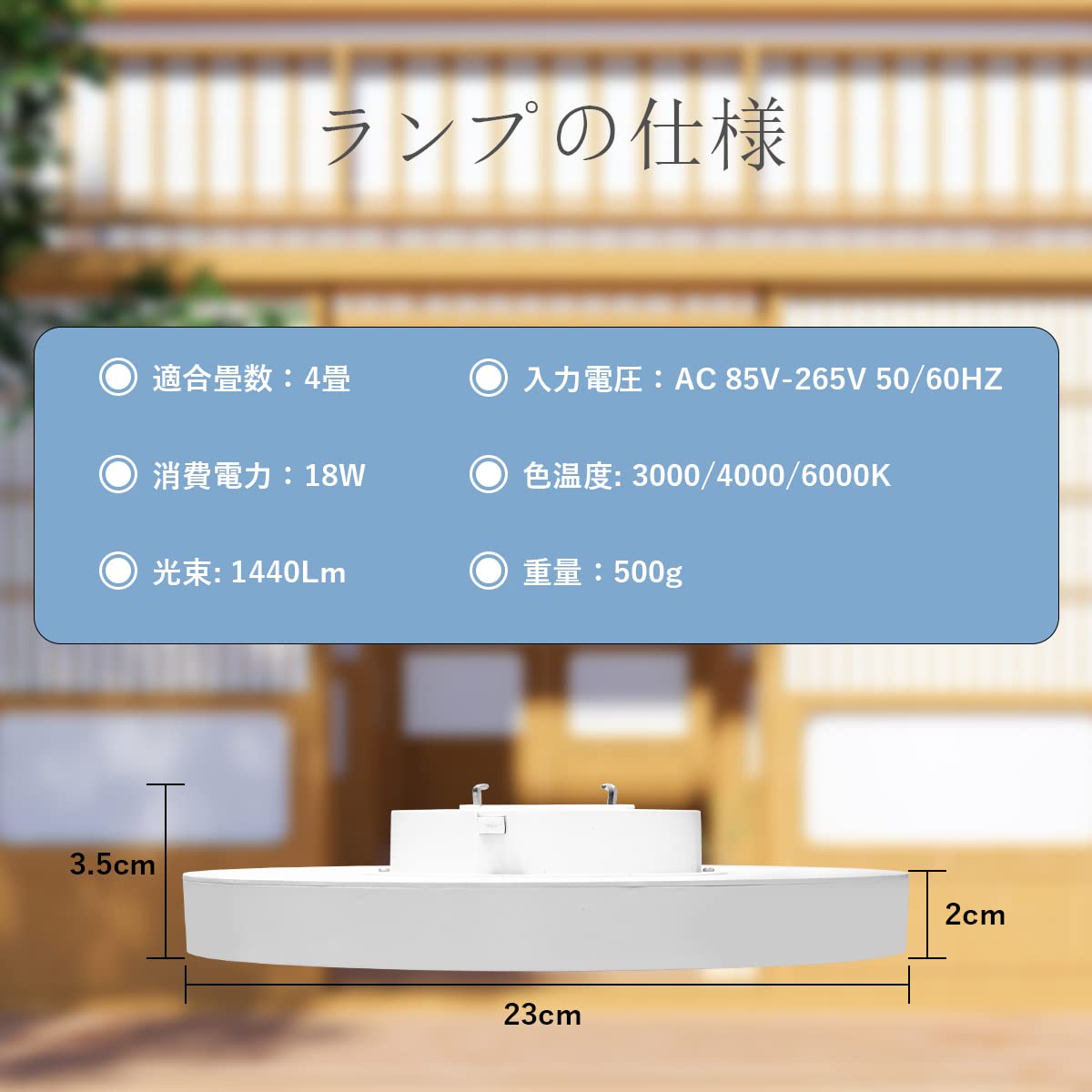 屋内用LEDライト、4畳用デザイン、玄関、廊下、洗面台、トイレ、ベランダの照明に使用できます。 3色のカラーバリエーションがあります。 リモコンは付属していませんので、壁スイッチになります。 光は柔らかく、きつくない。 クリアな明るさ、18Wの照明。