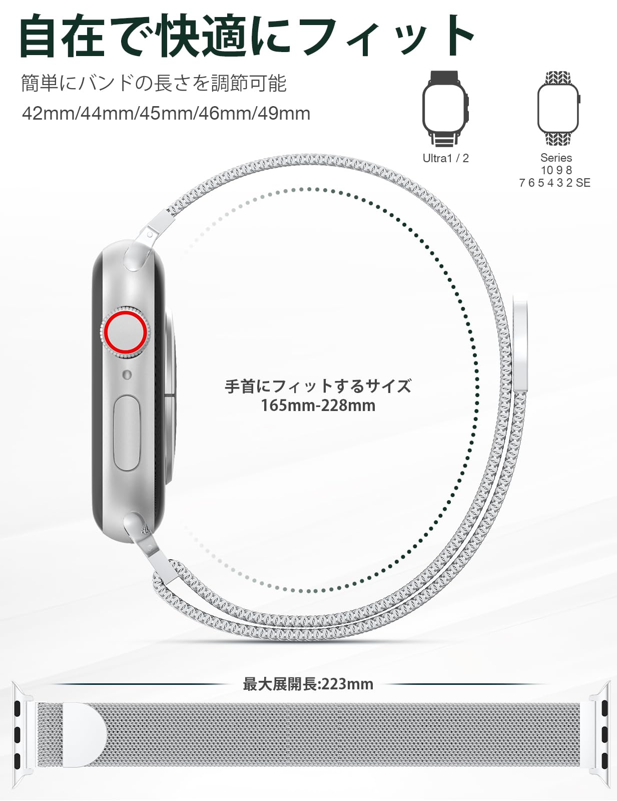 【数量限定】EPULY コンパチブル アップルウォッチバンド 49mm 46mm 45mm 44mm 42mm 41mm 40mm 38mm Apple Watch用のバンド マグネットクラスプ ステンレス鋼 メッシュ 通気 男女兼用 長さ調節 Watch Series 11 10 9 8 7 6 5 4 SE3 SE2 Ultra 3 に対応