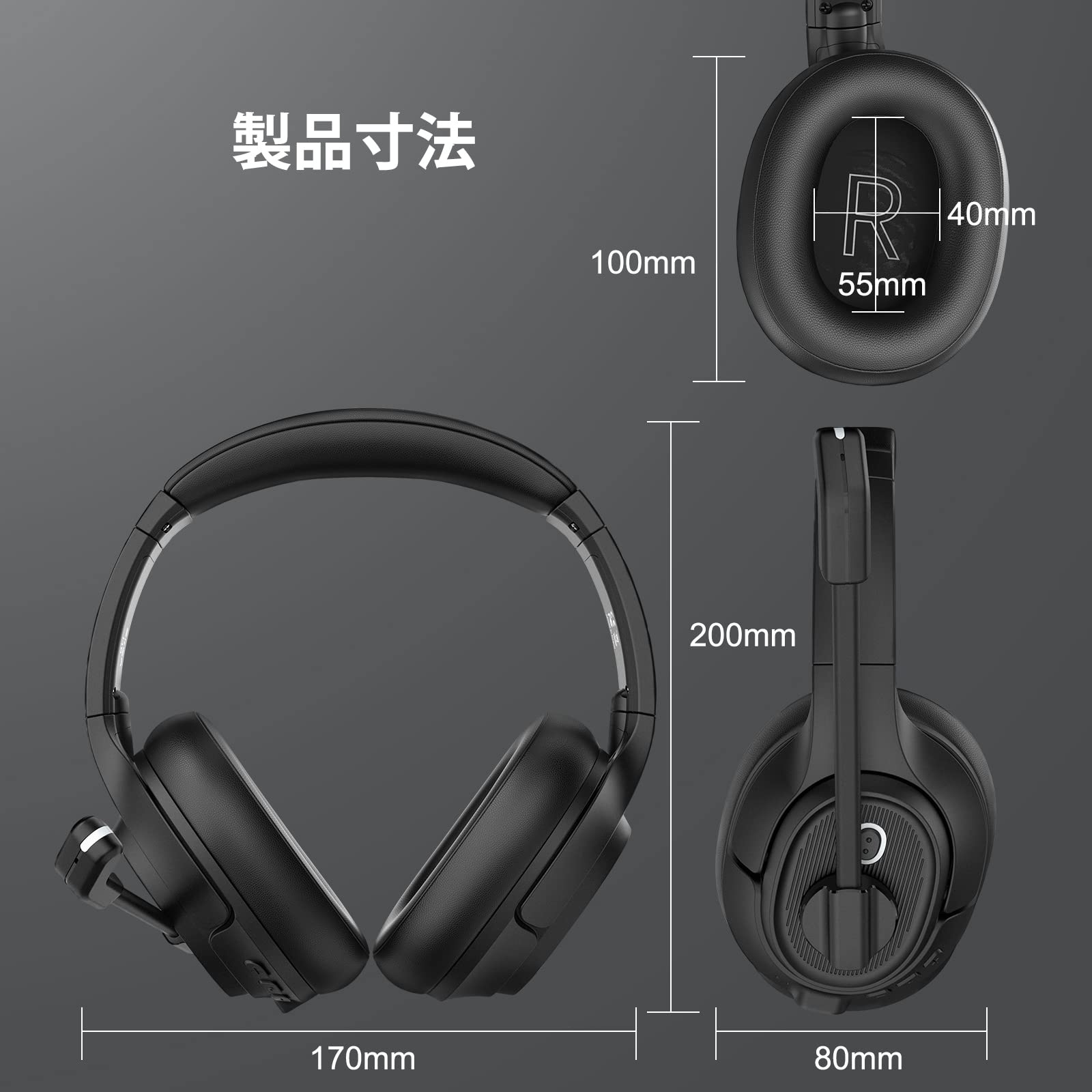 バッテリー長持ちオーバーイヤーヘッドセット: 高性能バッテリ内蔵のBluetoothヘッドセットは、2H満充電の状態で最大35時間の通話時間と55時間の音楽再生可能です。付属のType-Cケーブルを使用して、6分間の高速充電で最大2時間通話できます。