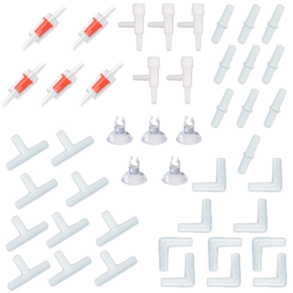 SANJAOYEE エアーチューブコネクター 30個セット T型 L型 I型 継手 分岐 接続 3種類 水槽用 アクアリウム エアポンプアクセサリー エアーバルブ5個セット+水槽吸盤クリップ 5個セット+逆流防止弁 5個セット