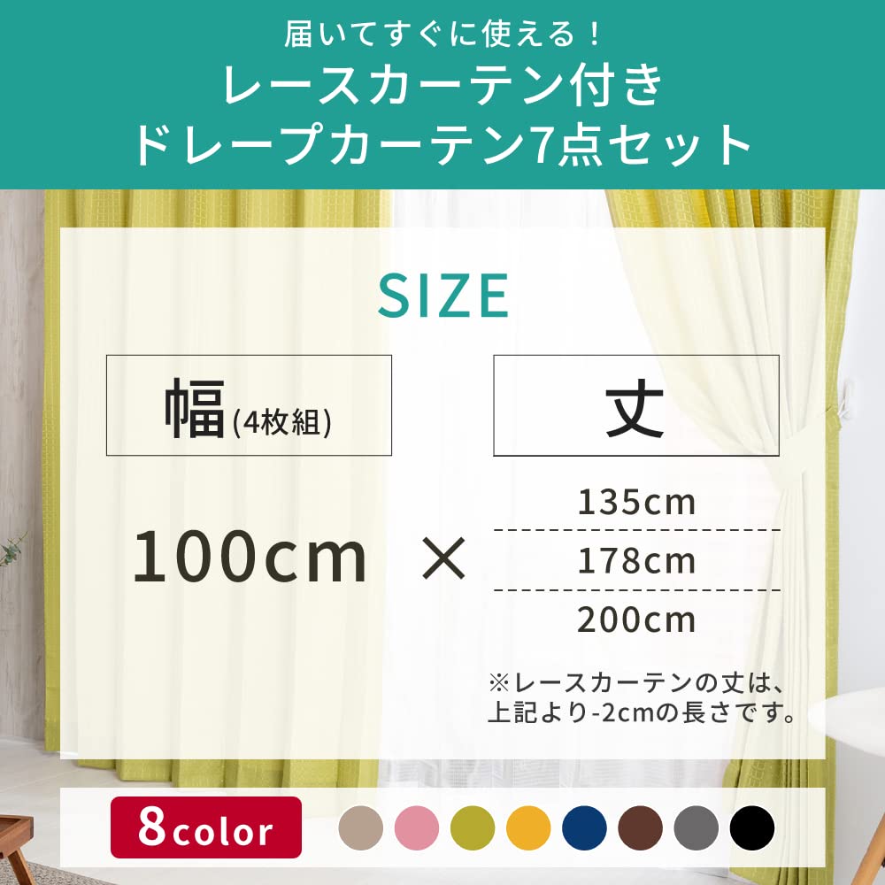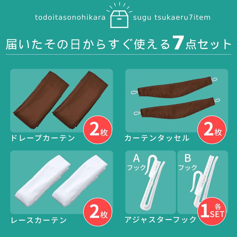 【新着商品】アイリスプラザ(IRIS PLAZA) すぐ使えるカーテン4枚セット 幅100cm×丈135cm レースカーテン付き 丸洗いOK ほどよい透け感(非遮光) アジャスターフック・タッセル付き 7点セット アイボリー