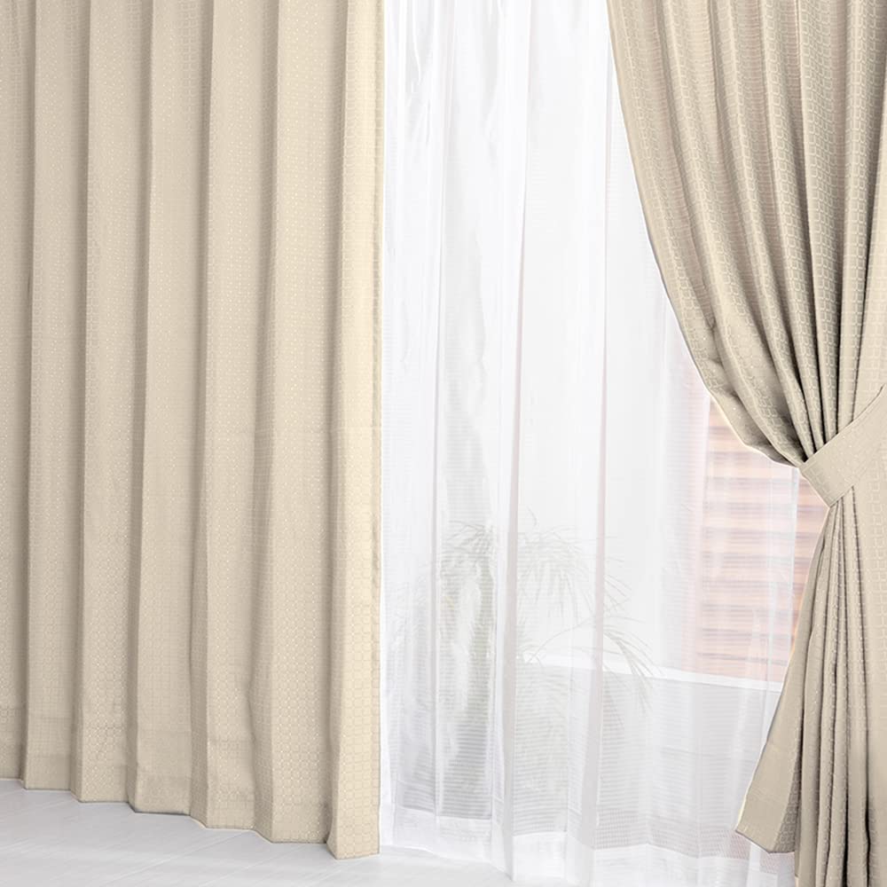 アイリスプラザ(IRIS PLAZA) すぐ使えるカーテン4枚セット 幅100cm×丈135cm レースカーテン付き 丸洗いOK ほどよい透け感(非遮光) アジャスターフック・タッセル付き 7点セット アイボリー
