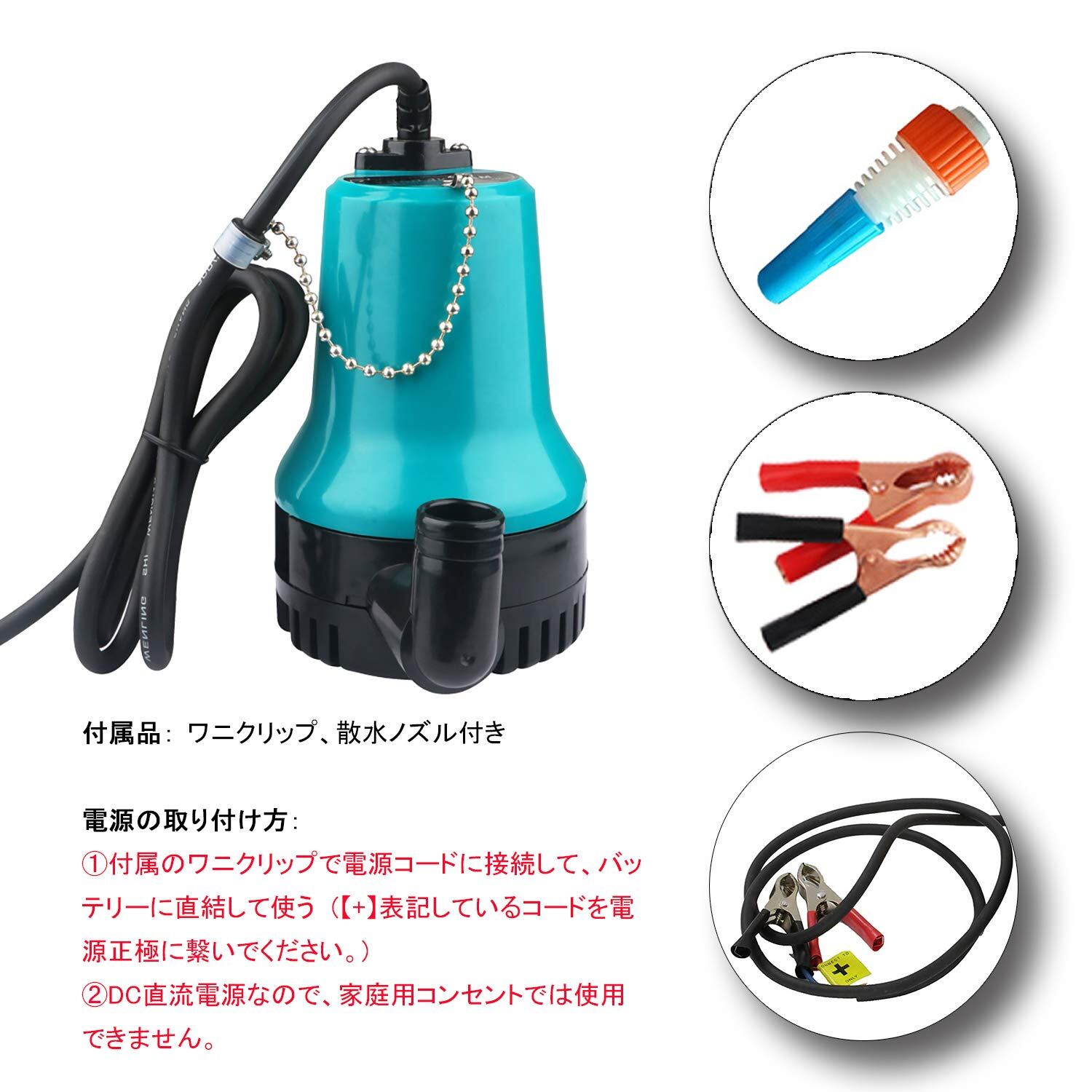 Tencen 給水・排水ポンプ 水中ポンプ 海水対応 12V/24V 50W ビルジポンプ 電源コード2.5m 小型 静音 高圧 排水量4500L/H 電動 ワニクリップ付き 日本語取扱説明書 (12V)