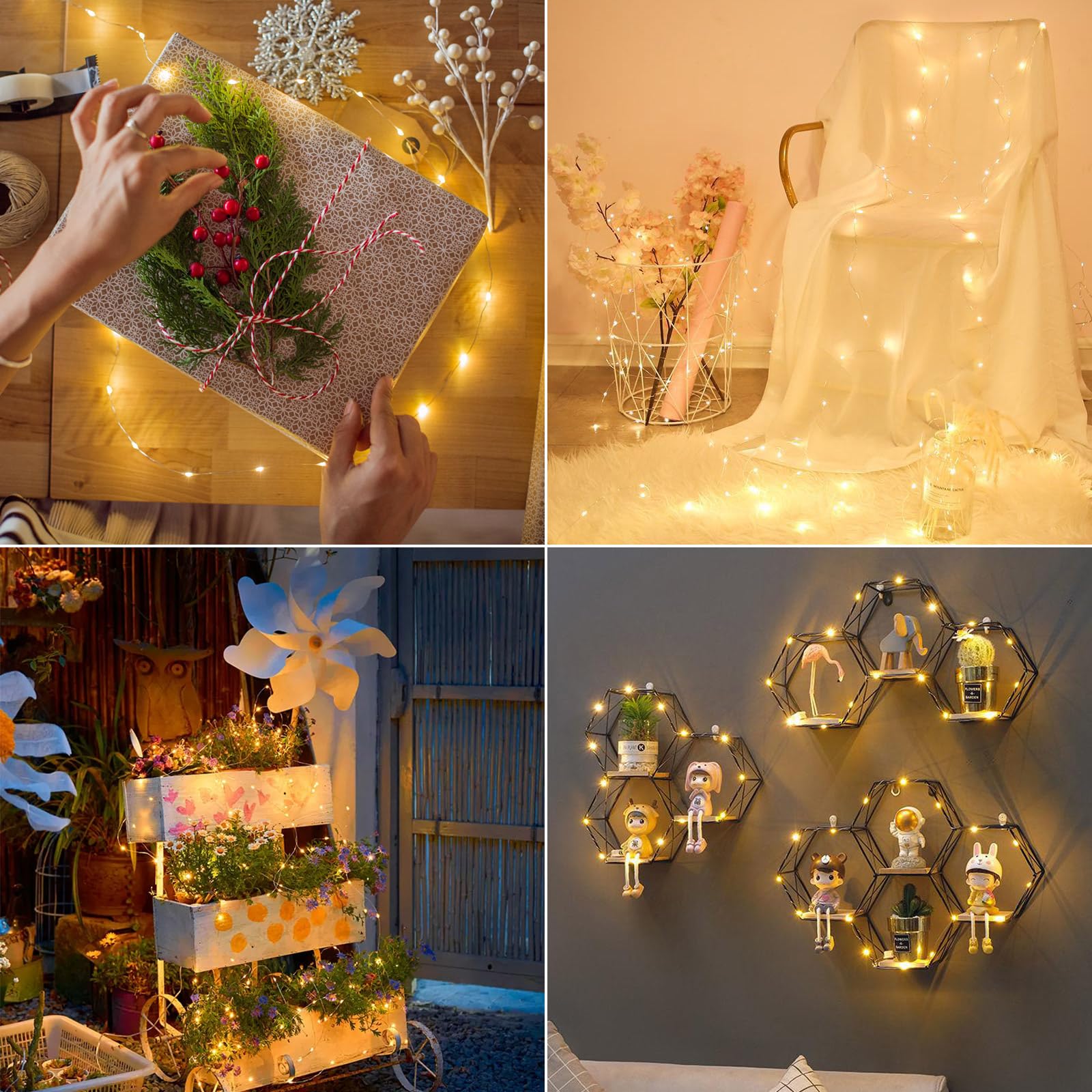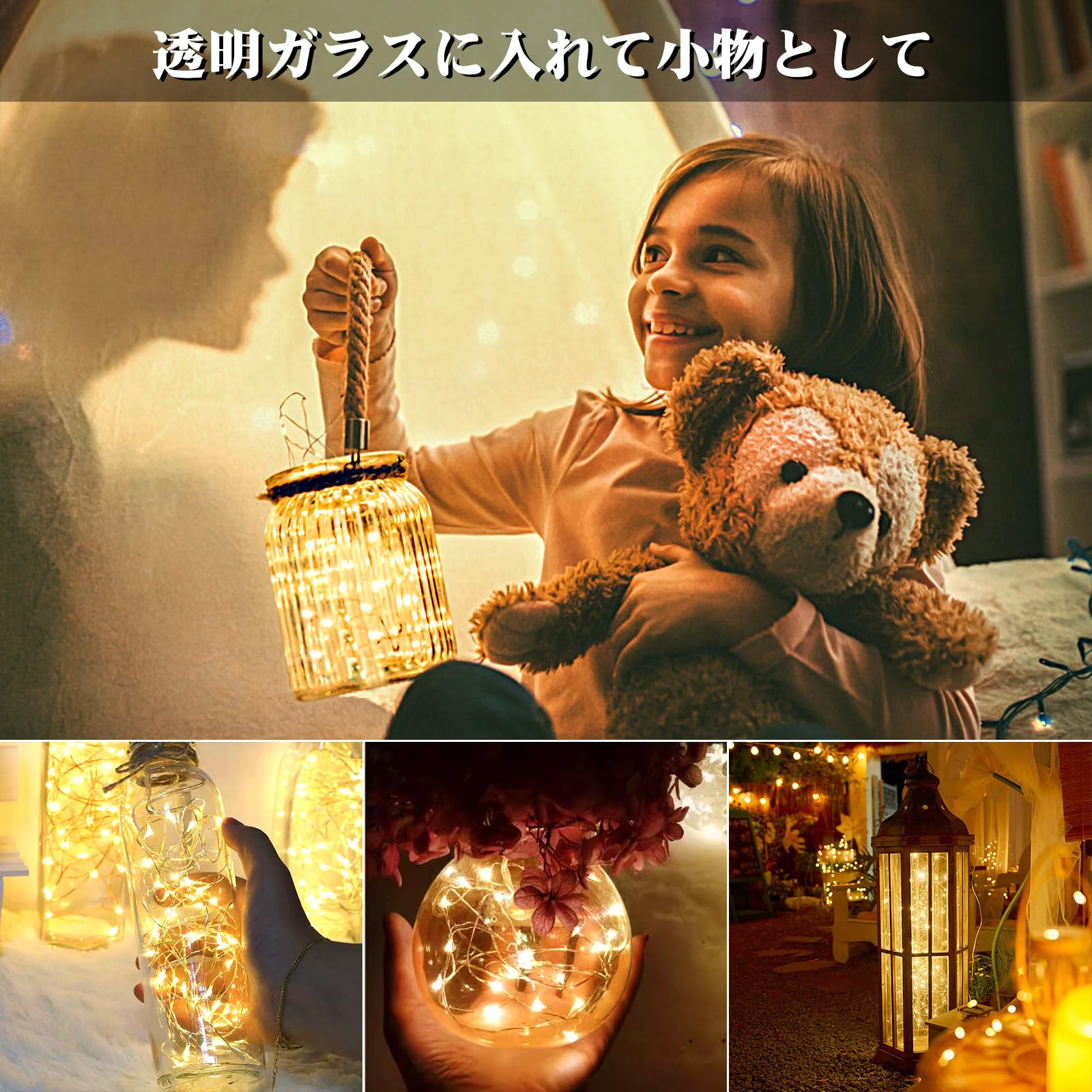 【使い勝手良い】バンールに巻き付けたり、クリスマスツリーを飾ったり、透明グラスに入れったり、ぬいぐるみやアクセサリーなどの小物を照らしたり、鏡の周りに飾ったり、窓、壁に垂らしたり、ベッドの周りに散らしたり、より可愛く幻想的になること間違いなしです。