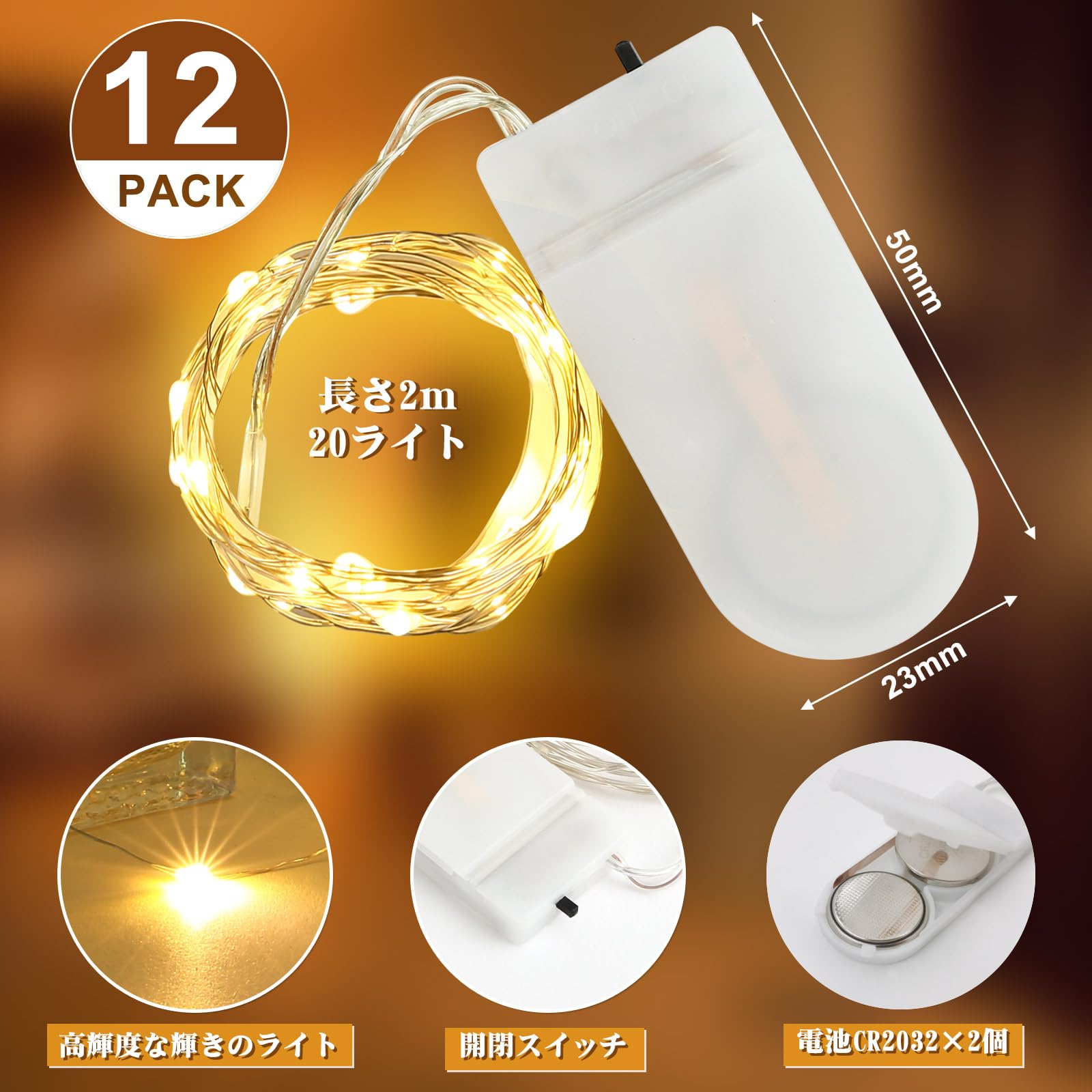 【数量限定】LIHAO フェアリーライト 12個セット LEDストリングライト 電池式 イルミネーションライト クリスマスツリー ライト led クリスマス 電飾 ストリングライト ledライト 電飾